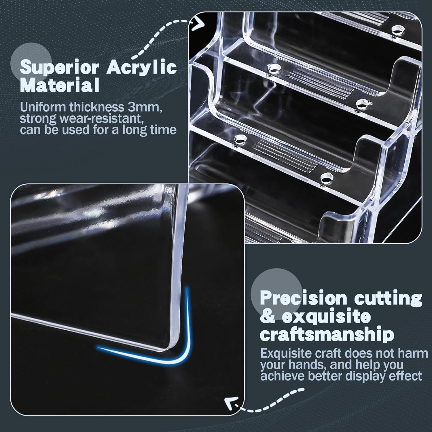 - Sleek & Professional Look: The clear acrylic design offers a modern, polished appearance while allowing the front of your business cards to remain fully visible. Enhance your professional image and make a lasting impression on clients or customers.