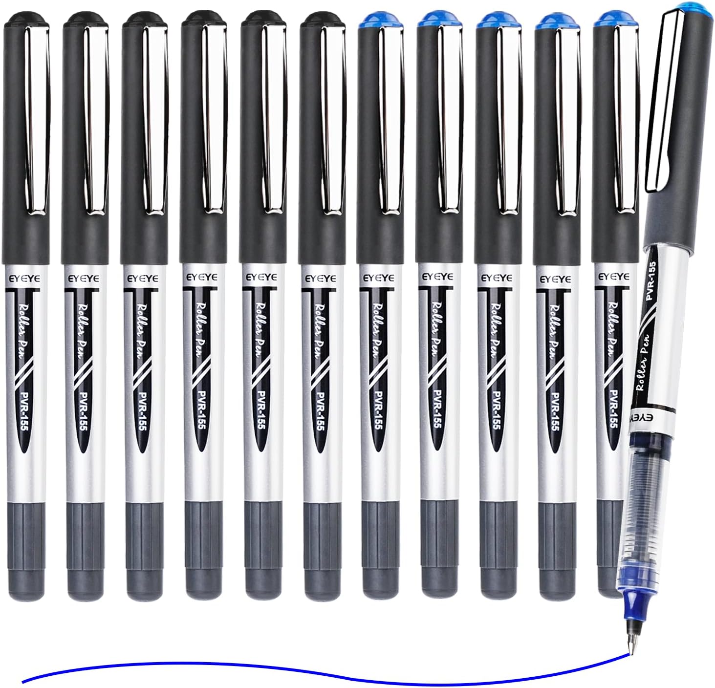 EYEYE Rollerball Pens 0.7mm, 6 Black 6 Blue Medium Point Roller Ball Pen Quick Dry, Liquid Ink Pens Fine Point Smooth Writing Pen for Journaling, Note Taking, Office, School Supplies