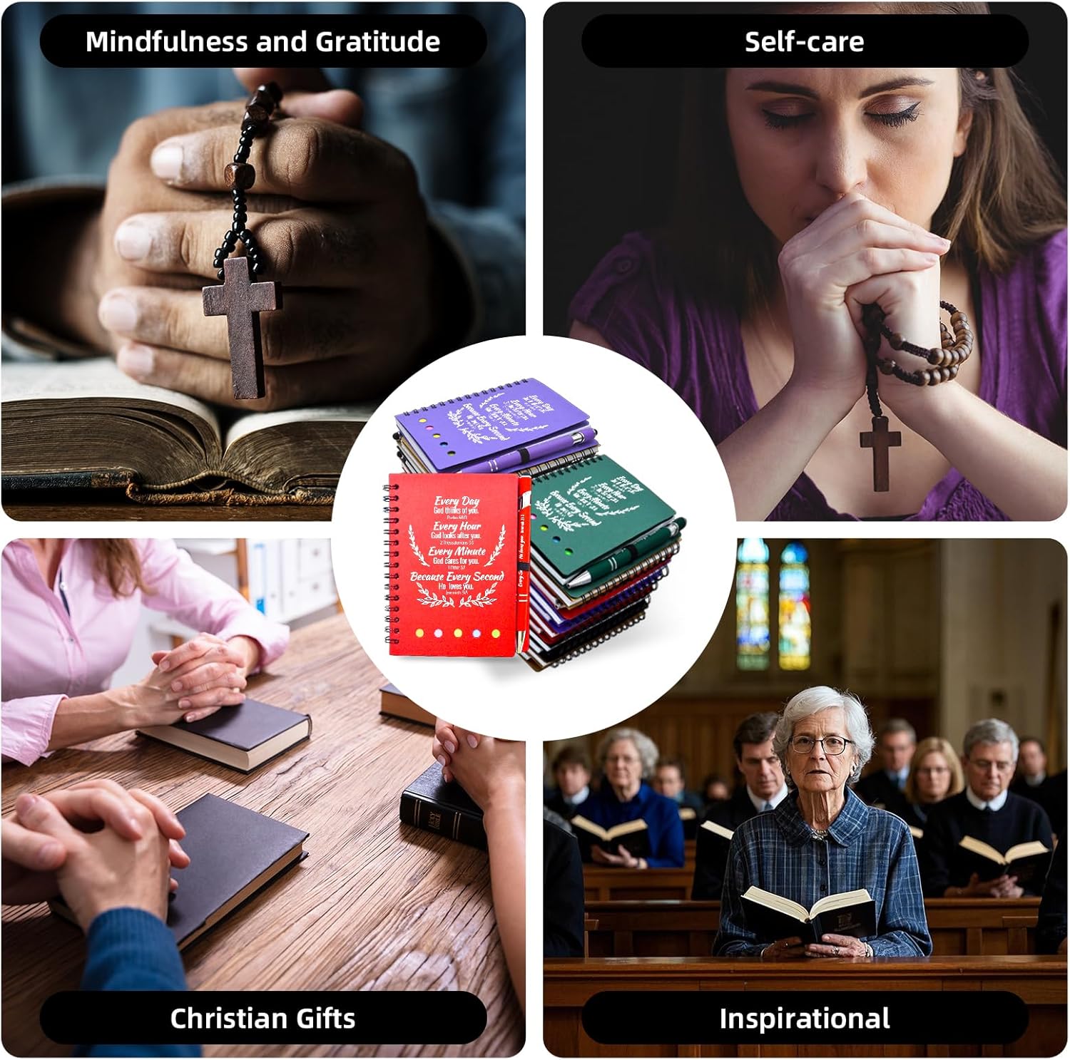 - Perfect for On-the-Go Users: Compact mini notepads fit into bags or pockets, making them great for travel kits, group prayer sessions, personal study, or souvenirs. These small Bible study notebooks (4.6 * 5.5 inch) and church pens (5.4 * 0.31 inch) are great for Sunday school stationery kits. Each notebook has 50 sheets, 100 pages, making them well-suited for youth ministry, volunteers, teams, friends, family, or your staff. Available in a convenient bulk set for easy sharing