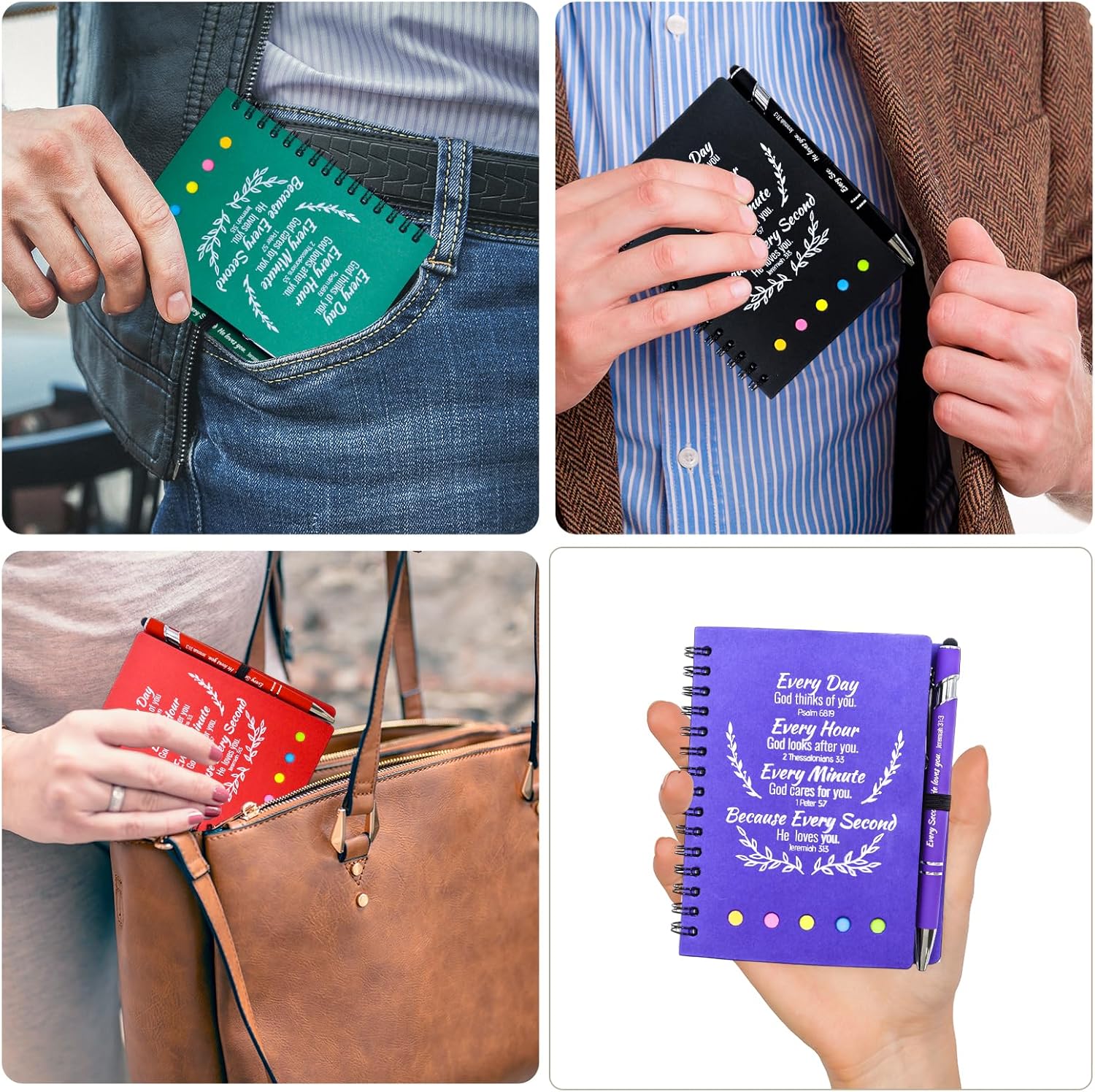 - Religious Gift Set: Perfect for churches, ministries, and group studies, this set includes 100 Bible notebooks in 5 classic colors, paired with 100 bamboo pens and included sticky notes, featuring scripture verses for reflection. With spiral binding and a portable size with ample writing space, these journals are great for personal use or gifting to adults and teens. Excellent for bulk purchases, study groups, church events, Christmas, birthdays, or coworker appreciation gifts!