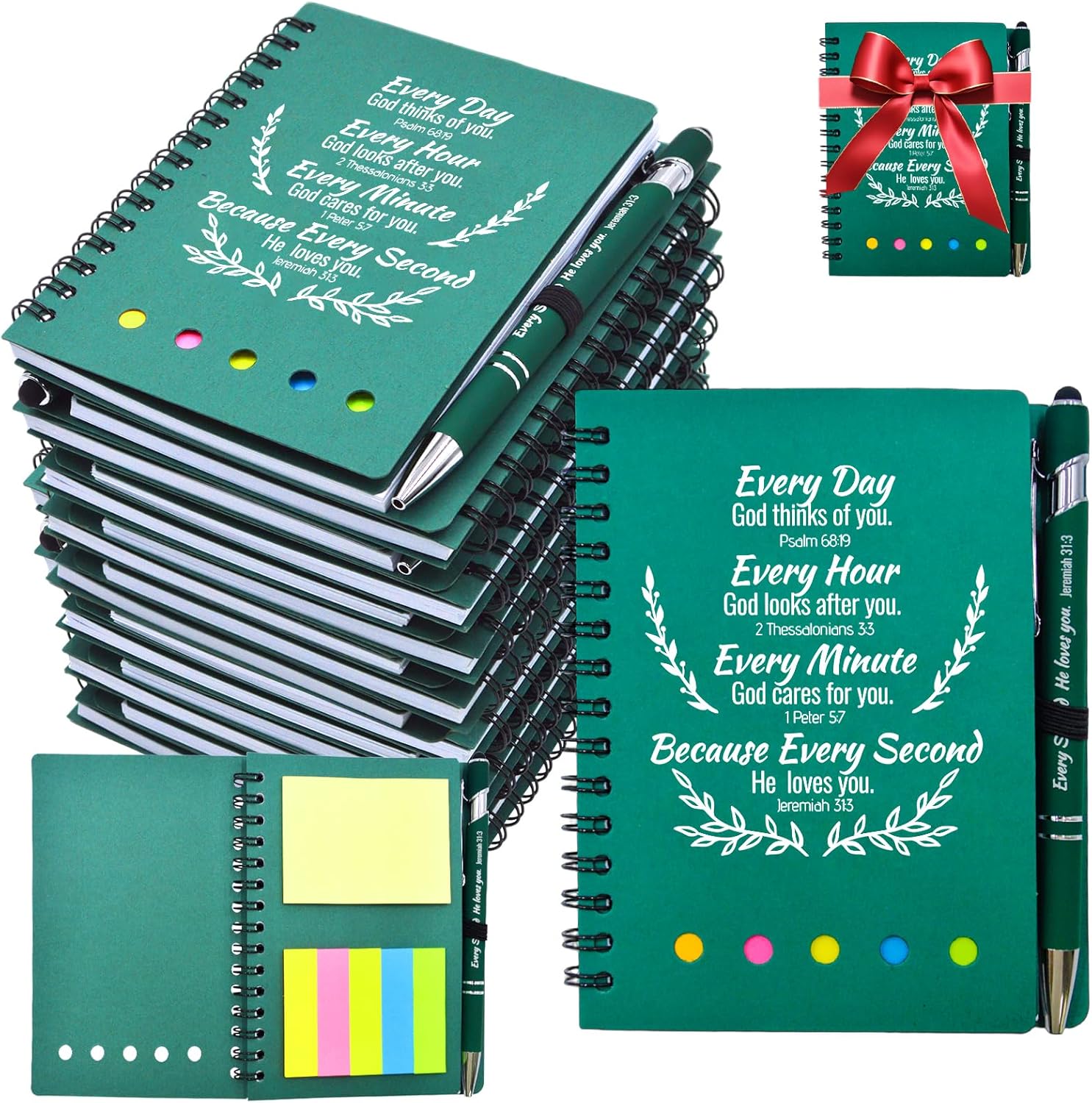 - Religious Gift Set: Perfect for churches, ministries, and group studies, this set includes 30 Bible notebooks, paired with 30 bamboo pens and included sticky notes, featuring scripture verses for reflection. With spiral binding and a portable size with ample writing space, these journals are great for personal use or gifting to adults and teens. Excellent for bulk purchases, study groups, church events, Christmas, birthdays, or coworker appreciation gifts!