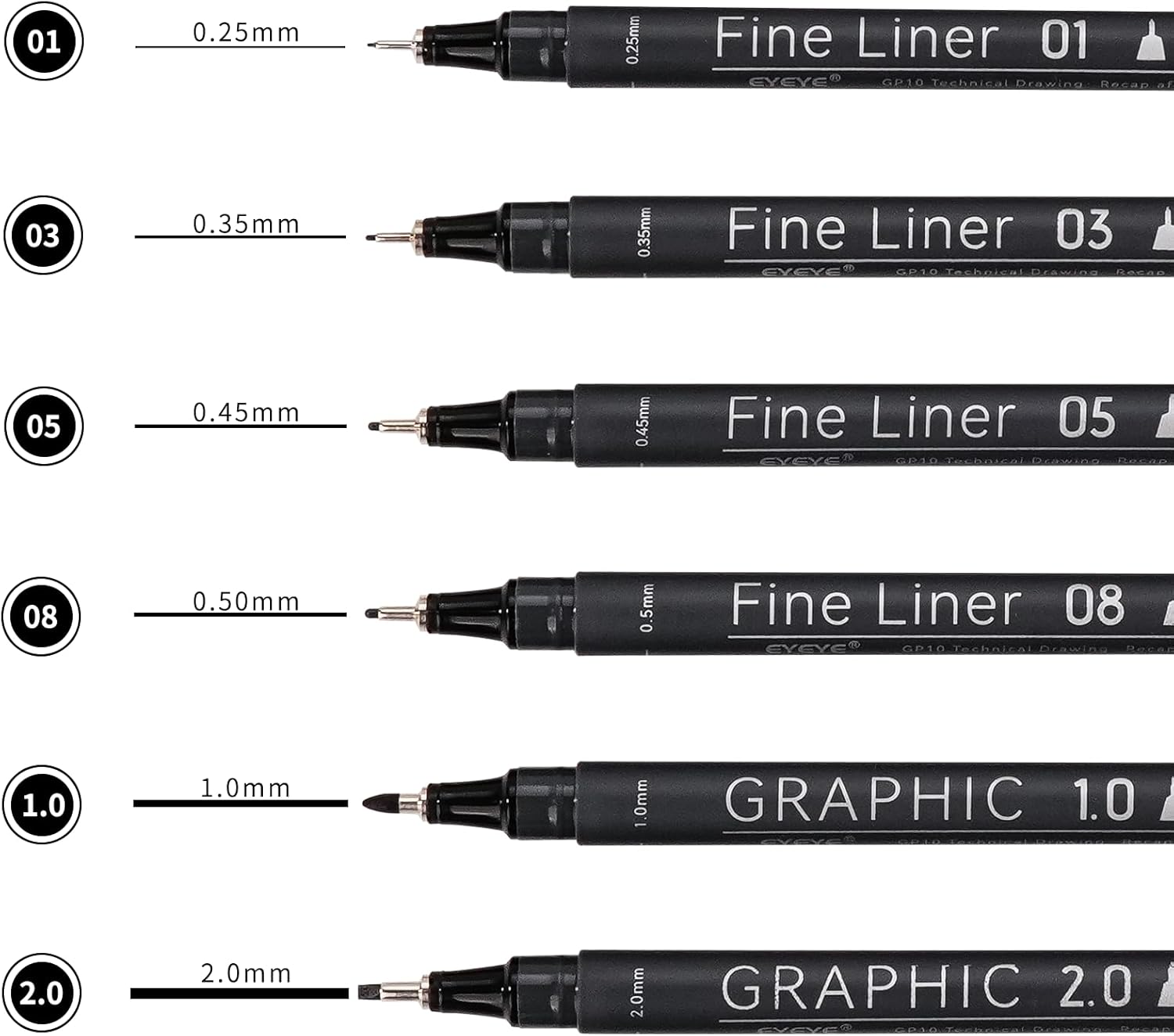 - eyeye Micro Pens, Black Drawing Art Pens,0.25/0.35/0.45/0.5/1.0/2.0mm Archival Pens Waterproof Ink Set Artist Supplies Archival Inking Markers Sketch Outline Pens,