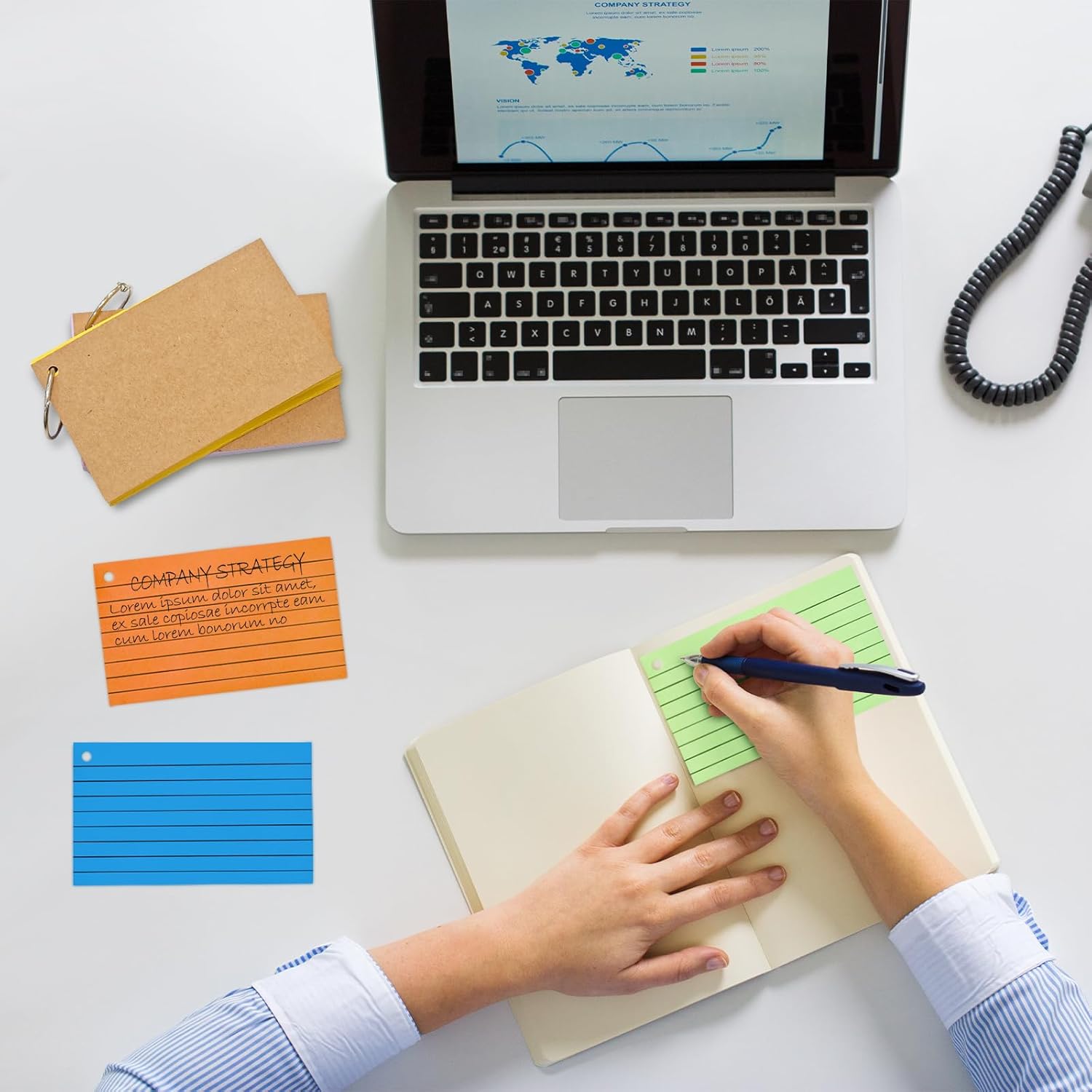 - DOUBLE SIDED DESIGN: Colored index cards with double-sided printing, ruled on two side for easy note taking, you can use for both sides of the writing which is more economical paper, come in 10 vibrant colors will improve your learning efficiency and facilitate classification