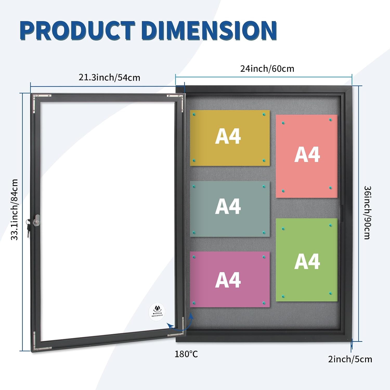 - Spacious Outdoor Display Case for Announcements - The 36x24-inch outdoor display case offers ample space for posters, notices, calendars, and certificates. This enclosed bulletin board adapts easily to different environments—perfect for schools, offices, and outdoor walkways.