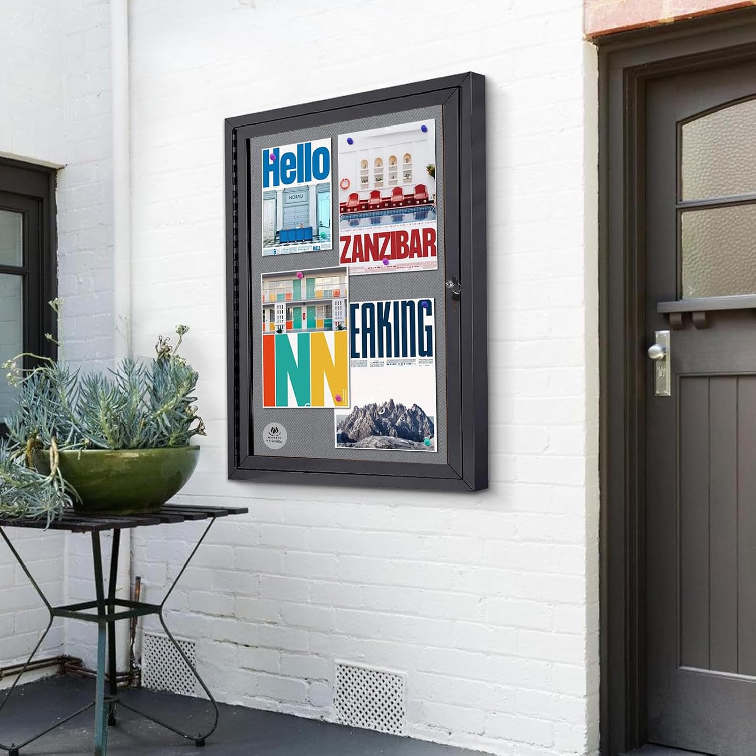 - Professional Grey Felt Surface for Long-Term Use - Inside, the soft grey felt surface holds push pins and staples securely while providing a clean, modern look. Unlike cork, the felt is wear-resistant and keeps your outdoor bulletin board tidy even with frequent updates.