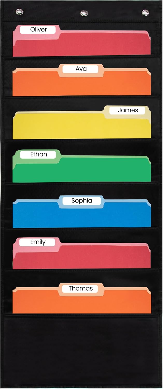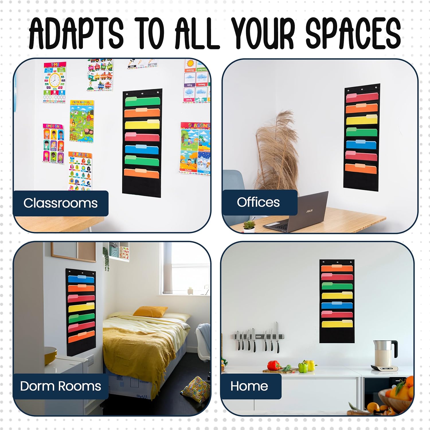 - Get Organized with Ease - Keep your files in check with our 7 pocket file folder pocket chart, fitting 7 letter-size folders. This vertical chart makes organization easy, allowing you to store and access documents easily.