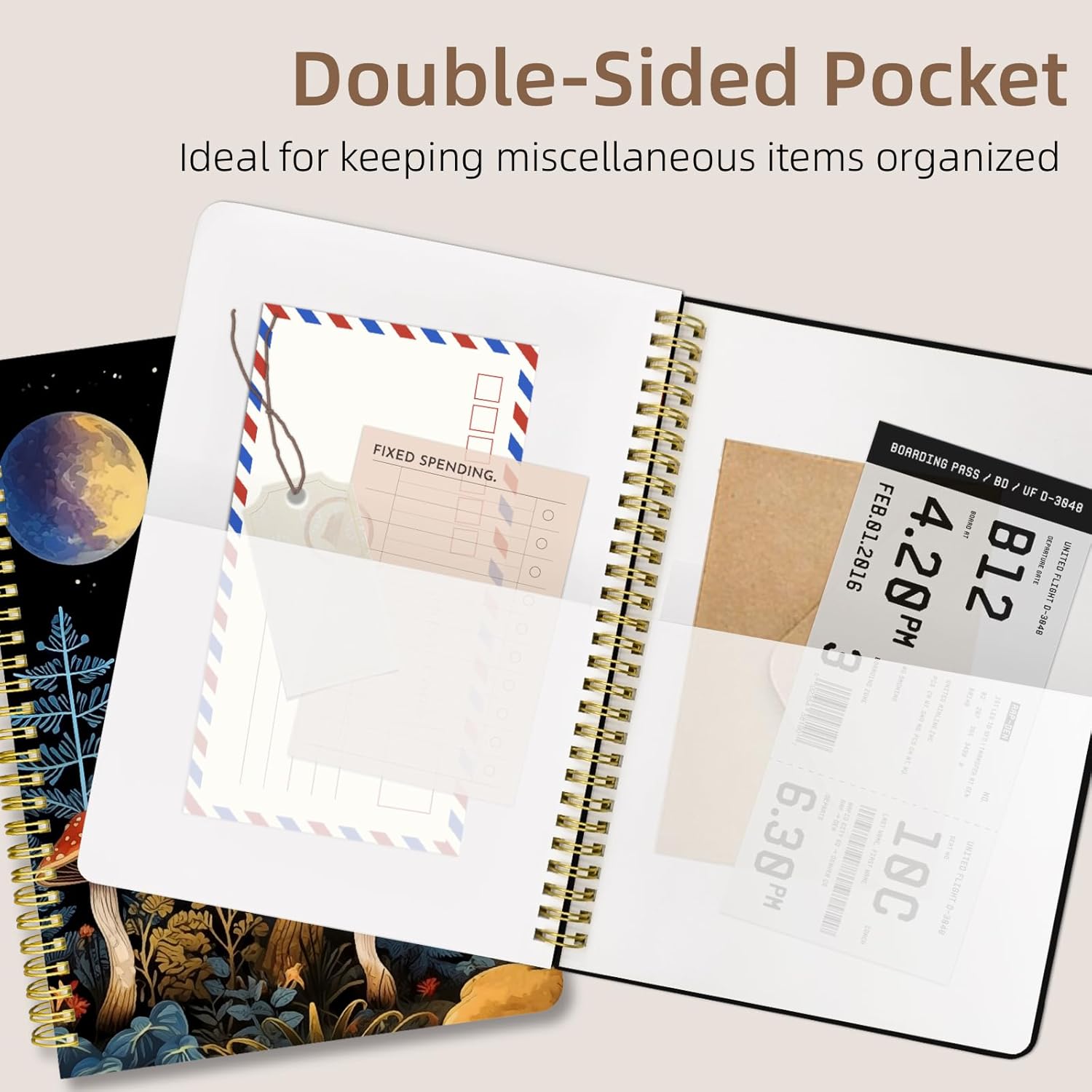 Cute Spiral Notebook journal B5 Aesthetic Pretty Design for Women Girls Kawaii with Pocket, 10 x 7.2 inch, Lined, Moon Mushroom