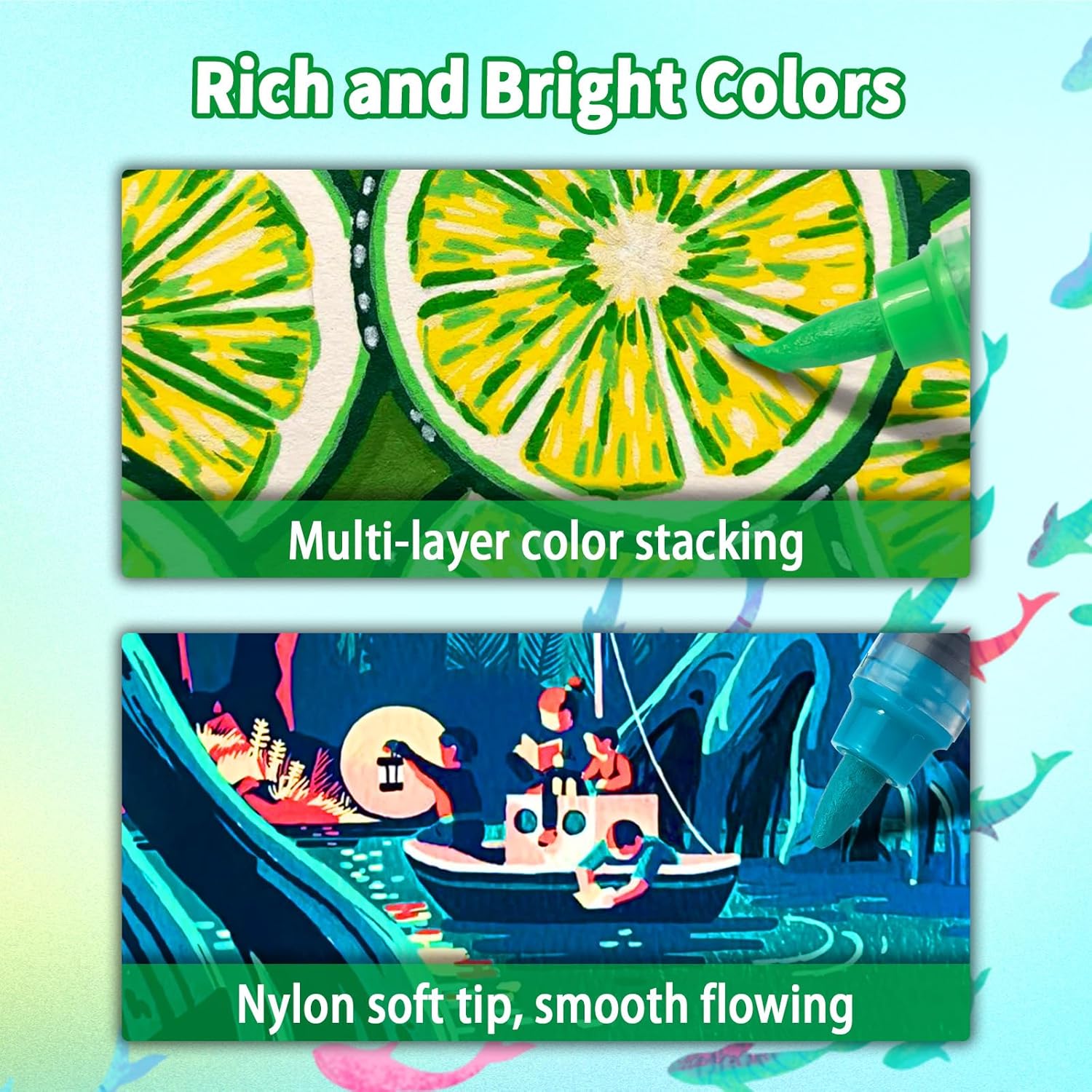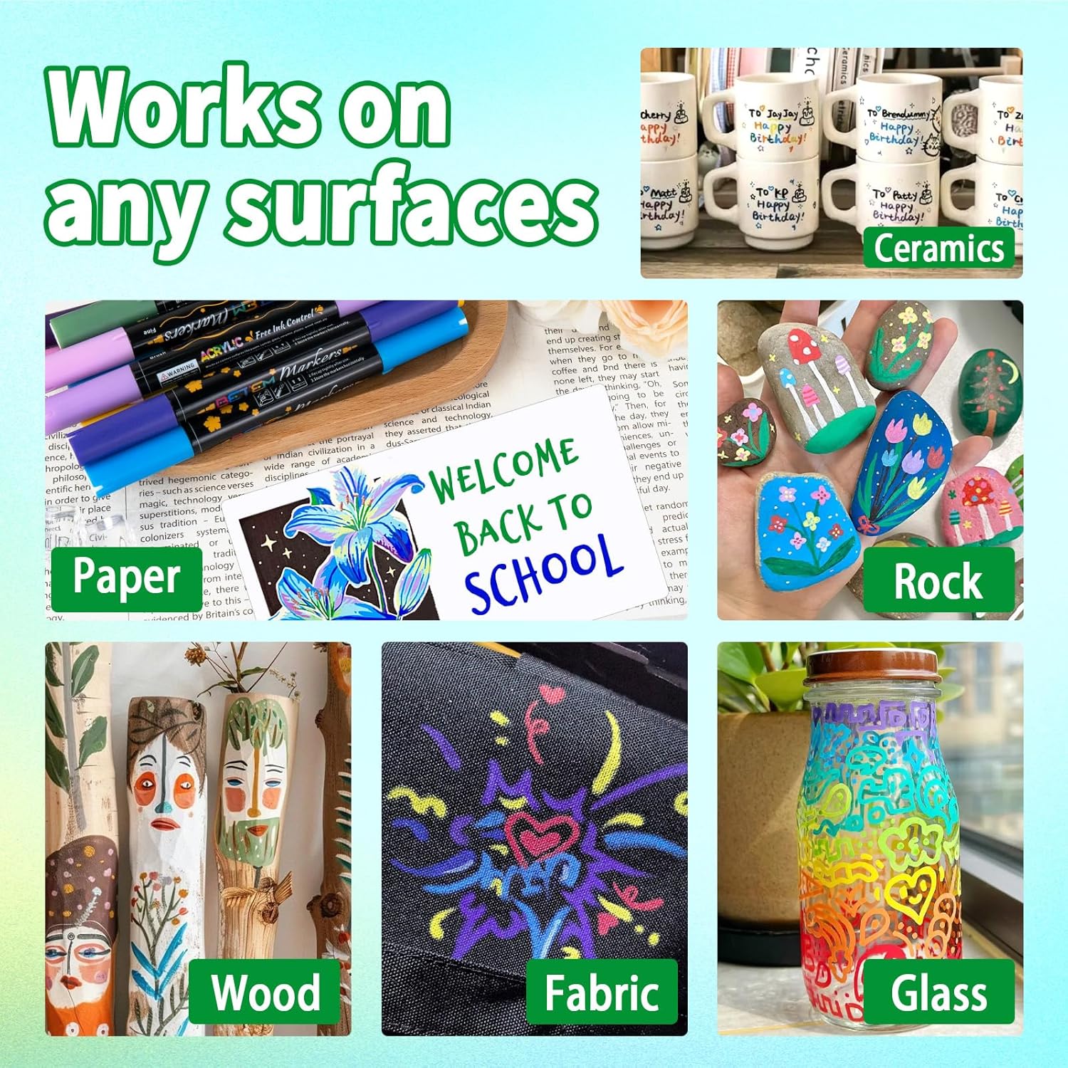 - 【Non-toxic And Safe】The acrylic pen complied with EN71-3 and ASTM D-4236, odorless and acid-free, perfect for students, children, teens, adults, artists, crafters, and DIY enthusiasts of all ages. It's an ideal art supplies gift choice for birthdays, Easter, Halloween, Christmas, Mother's Day or Thanksgiving to family, friends, and classmates