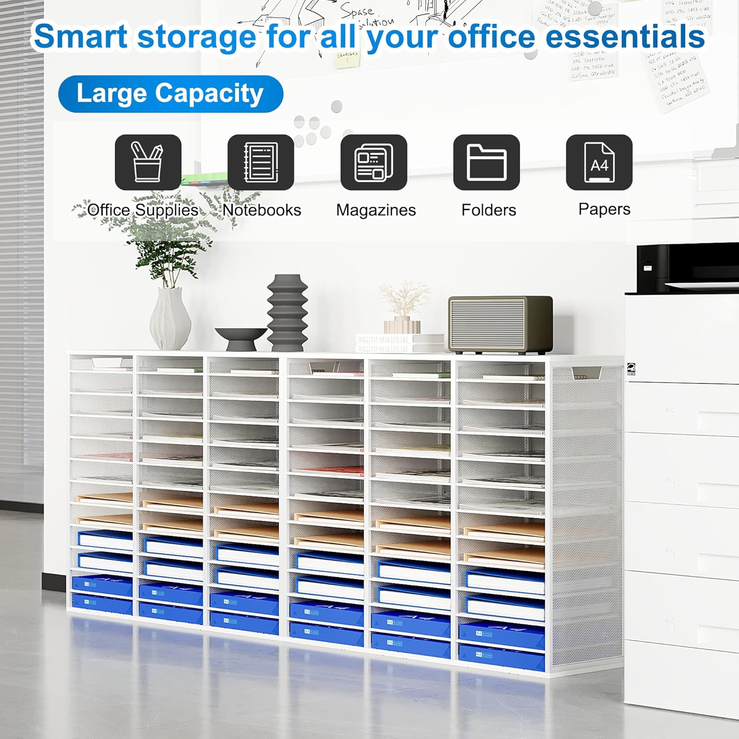 - ▶Amazing Storage Capacity and Space-saving. The literature organizer has 36 compartments, which can help you sort, store and organize literature, magazines, comic books, files, student assignments, binders, catalogs, diaries, papers and documents on your desk or counter quickly and easily and get you valuable workspace back