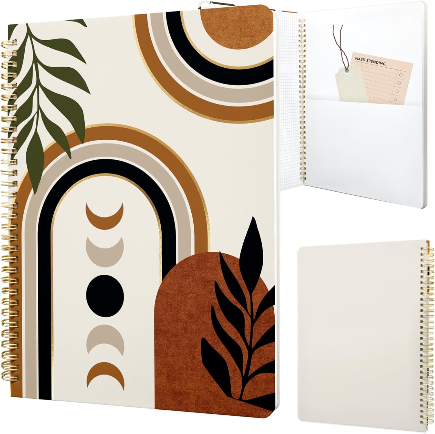Cute Spiral Notebook journal A4 Aesthetic Pretty Design for Women Girls Kawaii with Pocket, 8.5 x 11 inch, Graph, Moon Boho