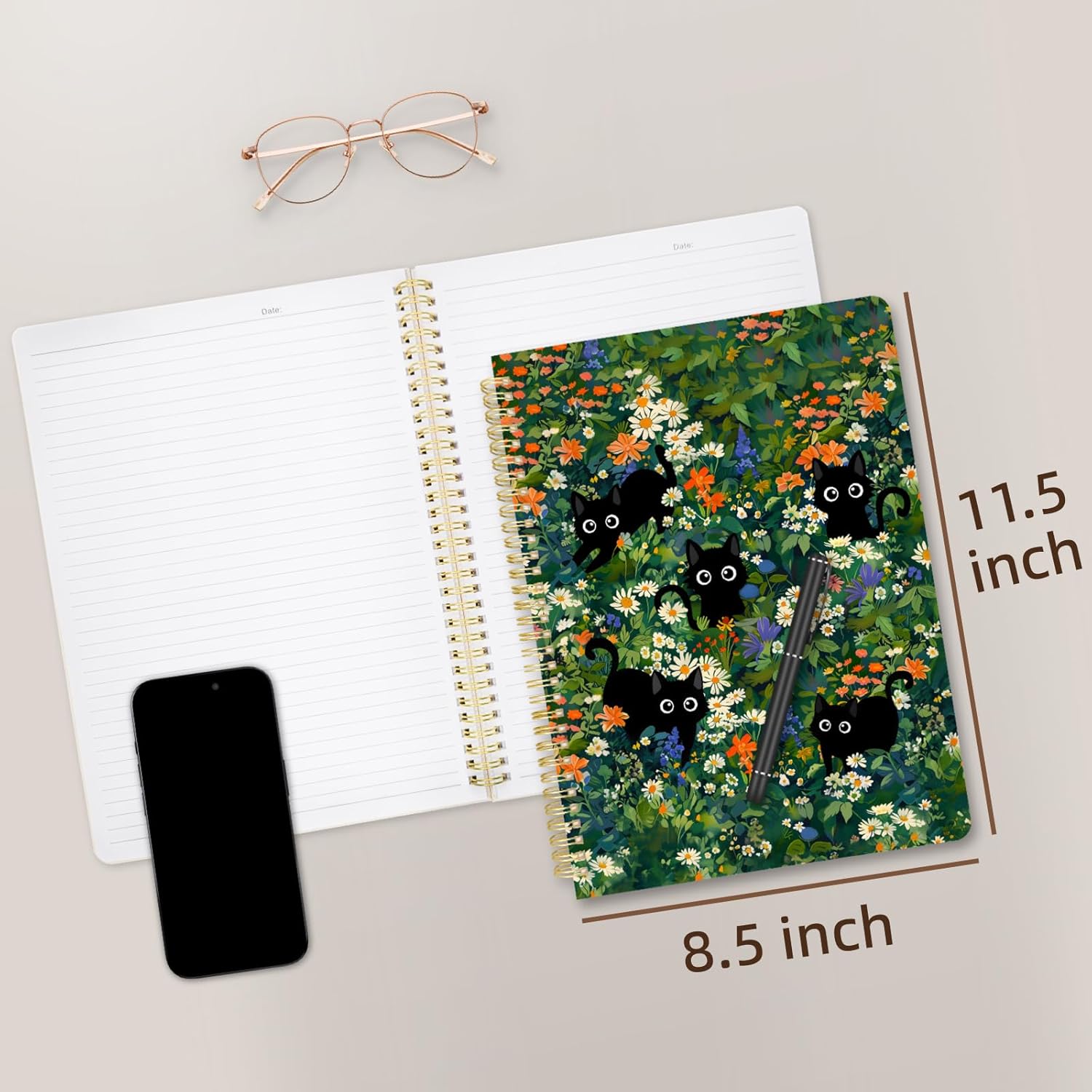 Cute Spiral Notebook journal A4 Aesthetic Pretty Design for Women Girls Kawaii with Pocket, 8.5 x 11 inch, Lined, Cat Garden