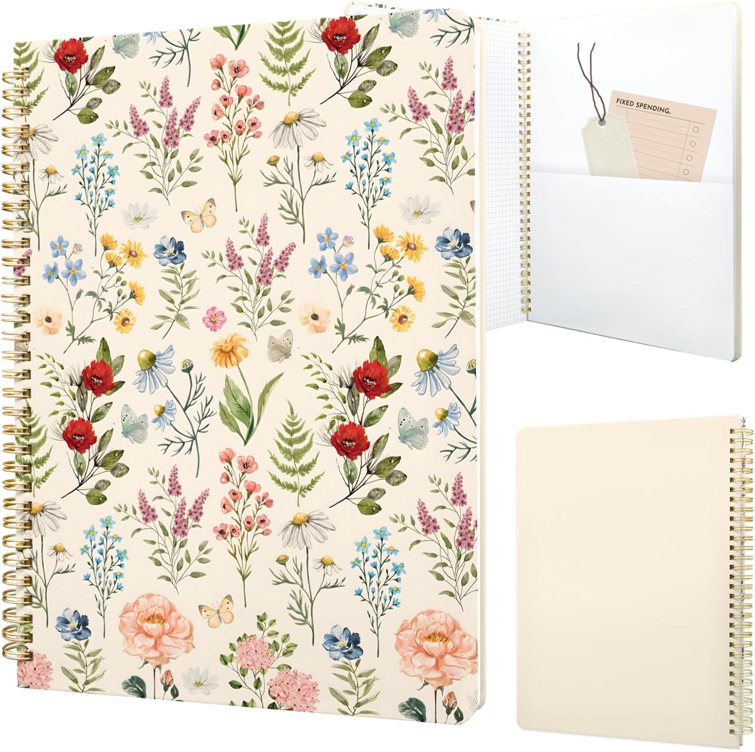 Cute Spiral Notebook journal A4 Aesthetic Pretty Design for Women Girls Kawaii with Pocket, 8.5 x 11 inch, Graph, Plant Flower