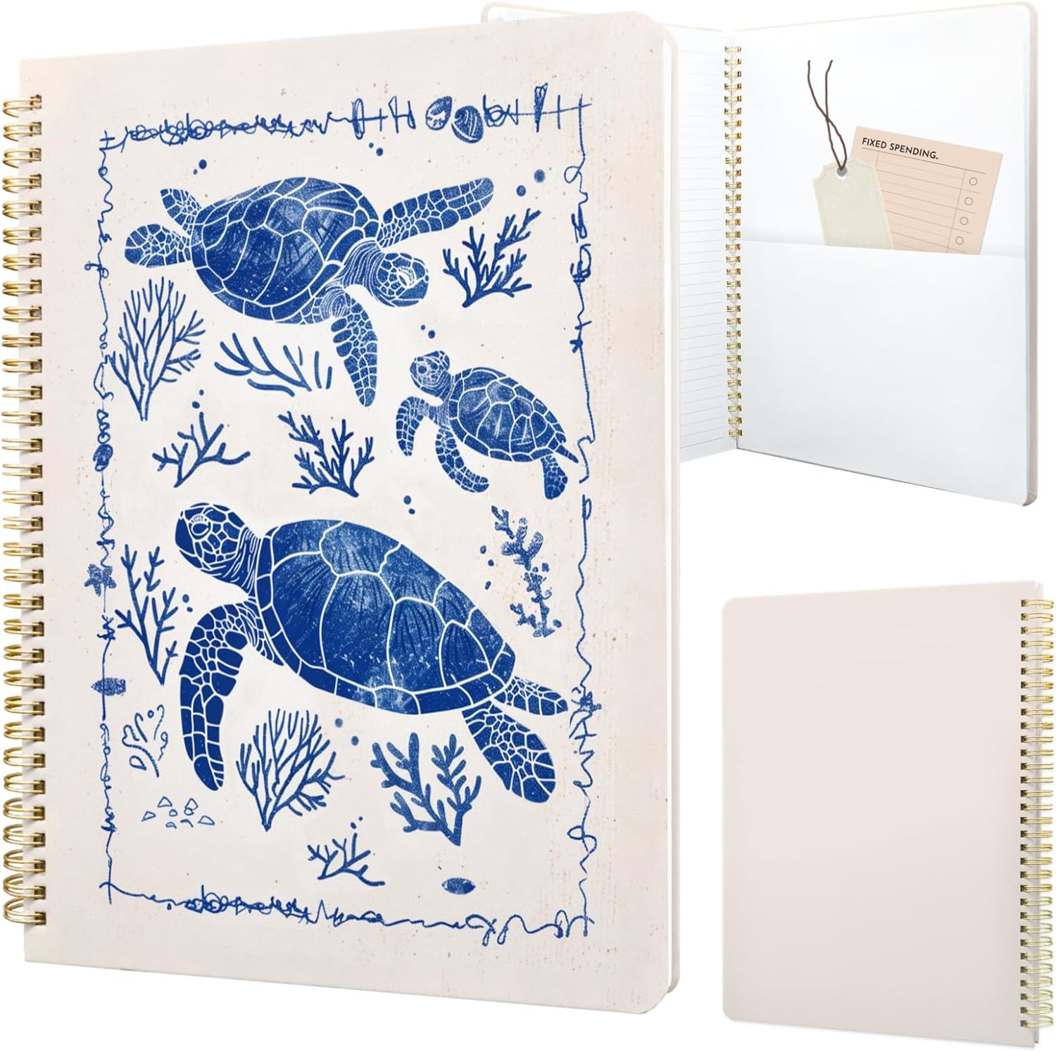 Cute Spiral Notebook journal A4 Aesthetic Pretty Design for Women Girls Kawaii with Pocket, 8.5 x 11 inch, Lined, Turtle