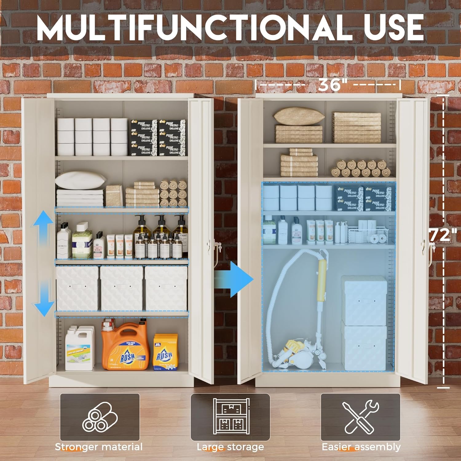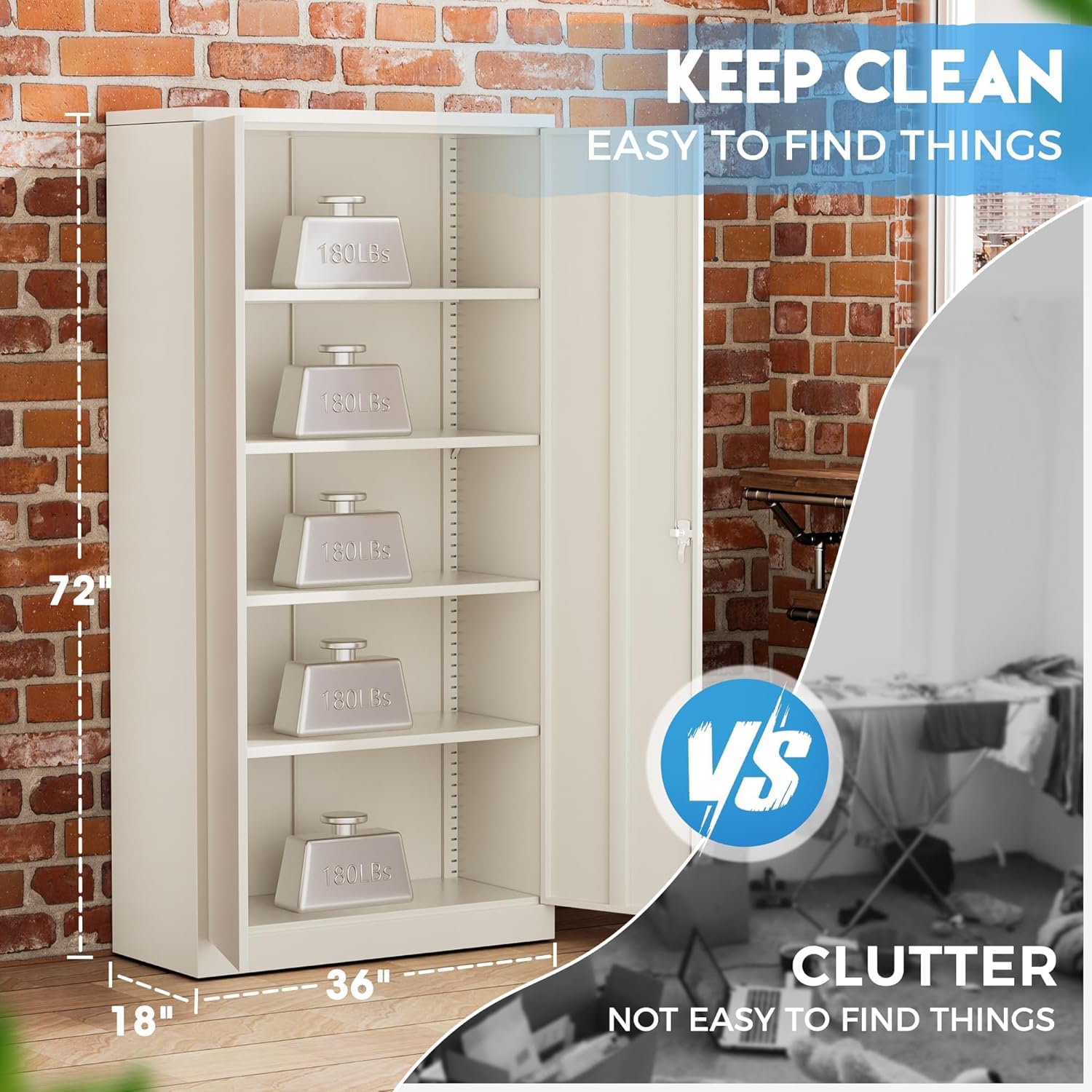 Greenvelly Garage Storage Cabinet,72" Metal Cabinet with 2 Doors and 4 Shelves,Steel File Cabinet for Home Office, Garage, Classroom(Grey 36" X 18")