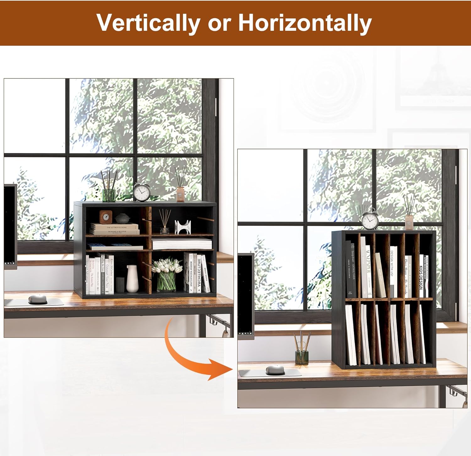 - See at a Glance: Make the most of your space with our Alpeir wood literature organizer. This desk organizer has 12 compartments in total, arranged in 2 rows and 6 columns. You'll have plenty of room to store and tidy up mails, books, documents, magazines, A4 papers, and more. Keep your desktop neat and tidy effortlessly, make everything sees at a glance
