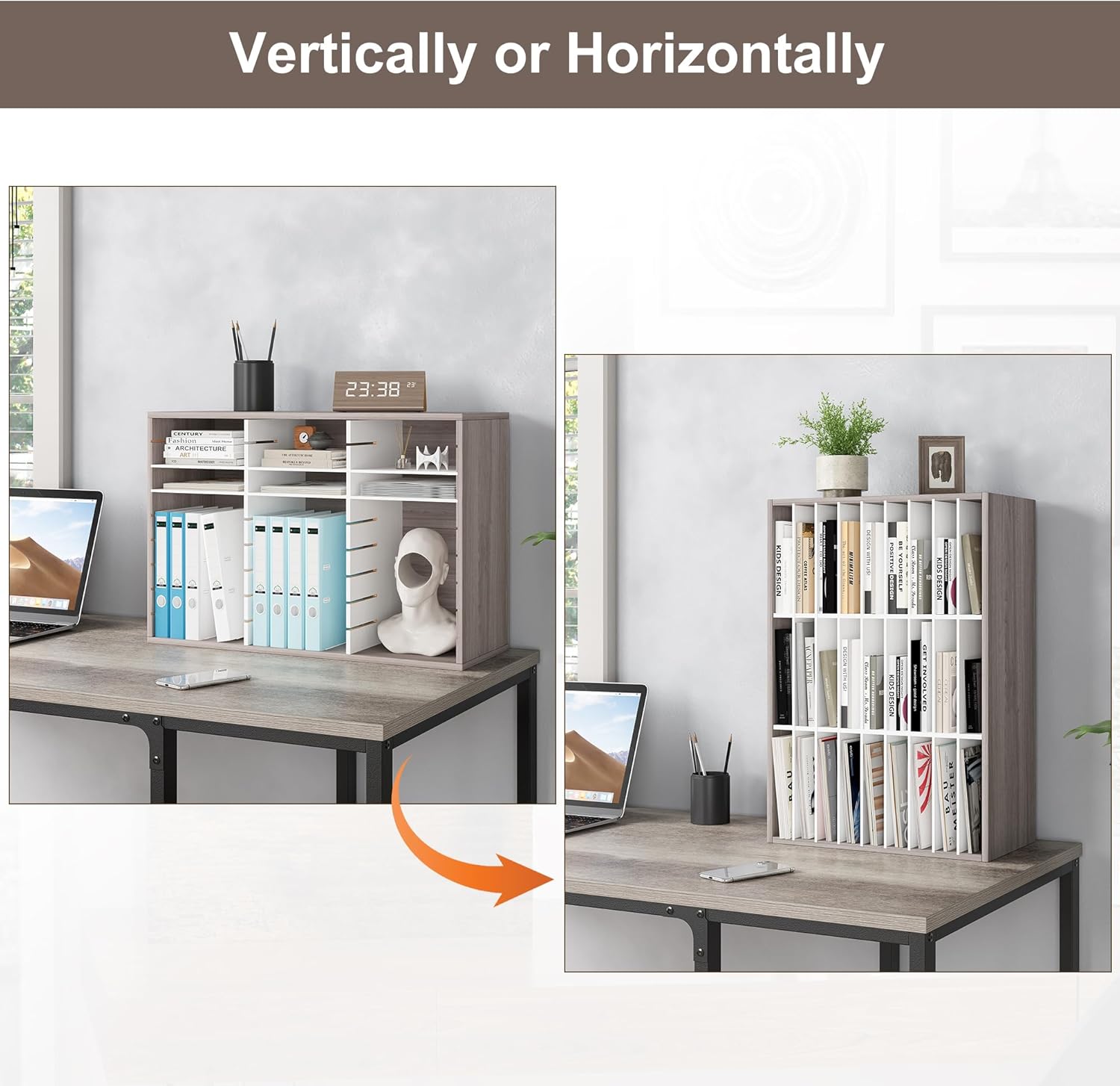 Mail Organizer Countertop, 27 Slots Wooden Desk File Literature Sorter, Adjustable Paper Storage Shelves Document Holder, Space Saving Desktop Mailbox for Office Classroom, Retro Grey/White