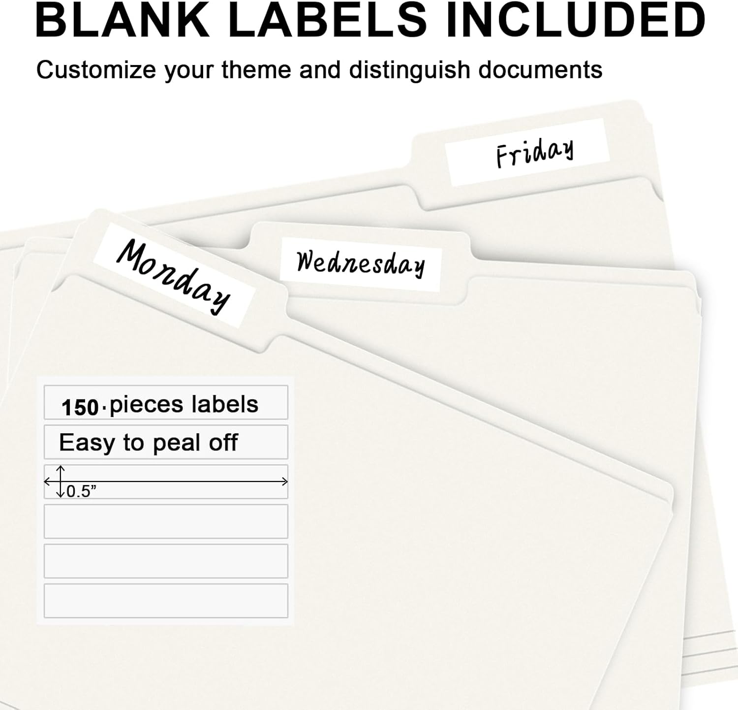 - PACKAGE INCLUDED: This bulk pack includes 150 letter size file folders (50 of each position) and 150 blank labels, idea for any home, office, or school project, providing you with plenty of storage space for all of your important documents