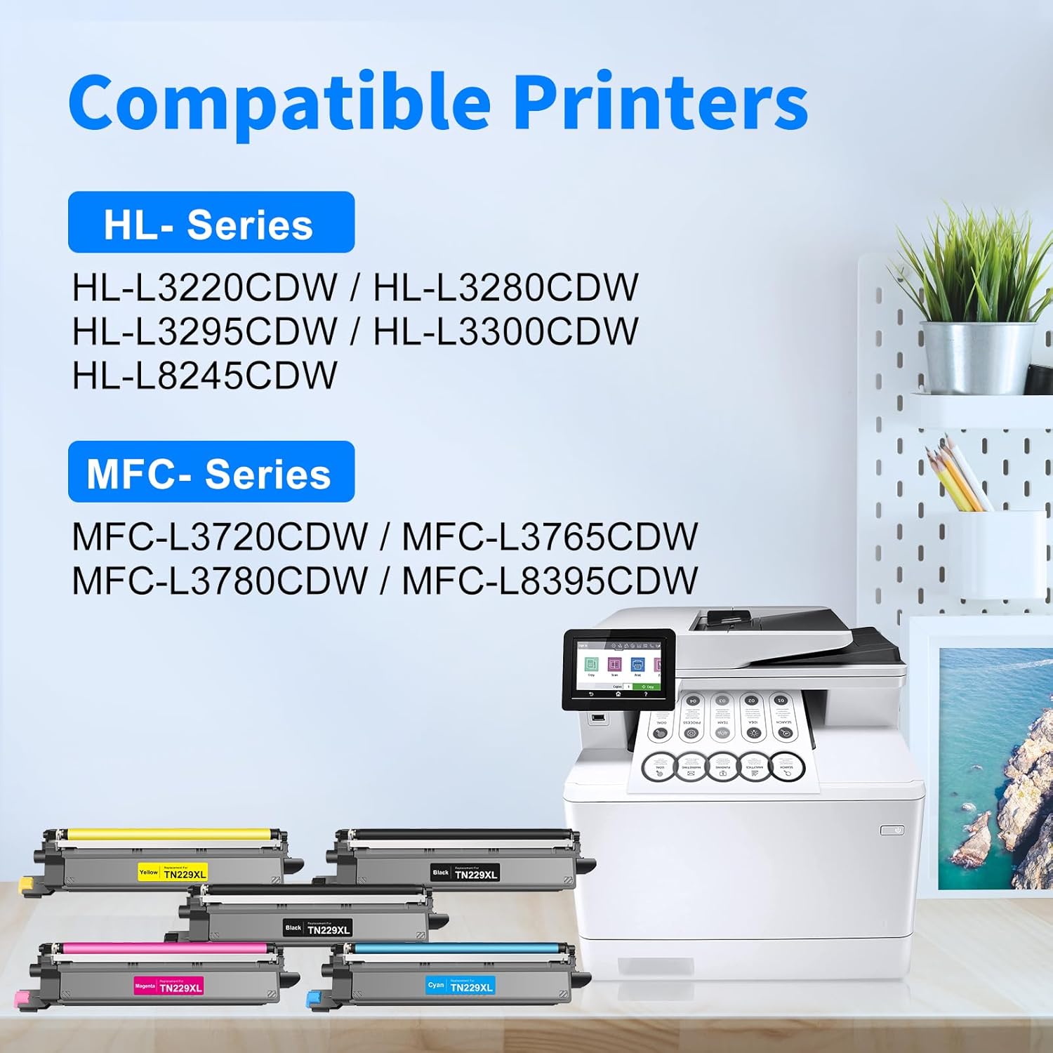 - ăWorks with Printersă: TN229 Toner TN229/XL/V TN229XXL high yield works with HL-L3220CW, HL-L3280CDW, HL-L3295CDW, HL-L3300CDW, HL-L8245CDW, MFC-L3720CW, MFC-L3765CDW, MFC-L3780CDW, MFC-L8395CDW printer