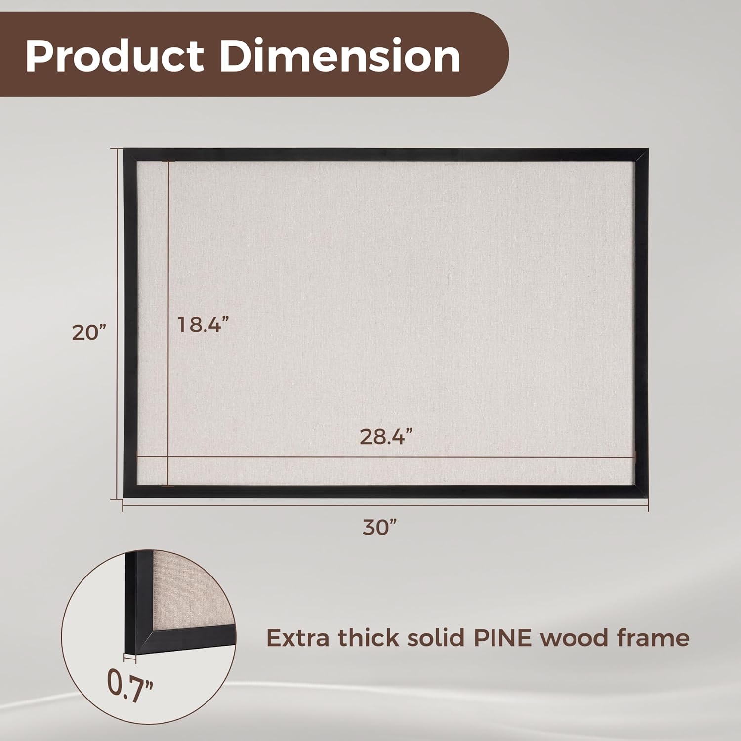 - Pine Frame Material: Our cork boards for walls is made of 100% pine wood which has well self-healing ability and repairability. The pin board features a four-ply splint design that is strong and thick enough not to be punctured by thumbtacks.