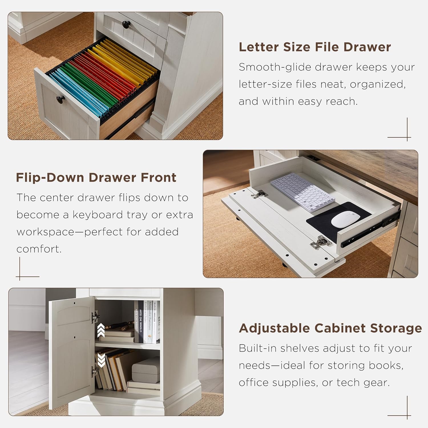 - Durable & Reliable Construction: Crafted from premium engineered wood, this farmhouse desk set is built to handle daily use with long-lasting strength and stability. It ships in two separate boxes that may arrive on different days. Need help? Our customer support team is just a message away!