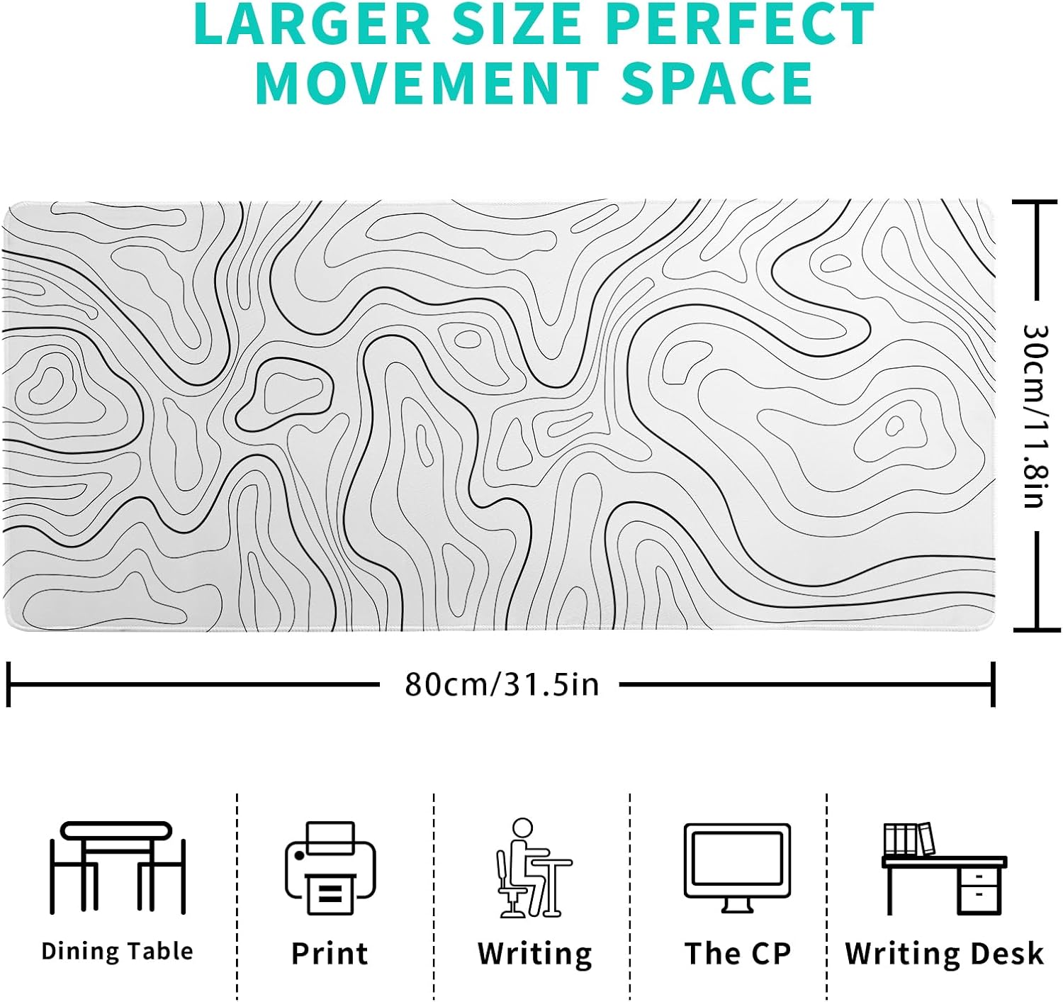 Gaming Mouse Pad Topographic Large Mousepad Keyboard 31.5 x 11.8in for Non-Slip Base and Stitched Edge, Extended Desk Pad XL Desk Mat (White)