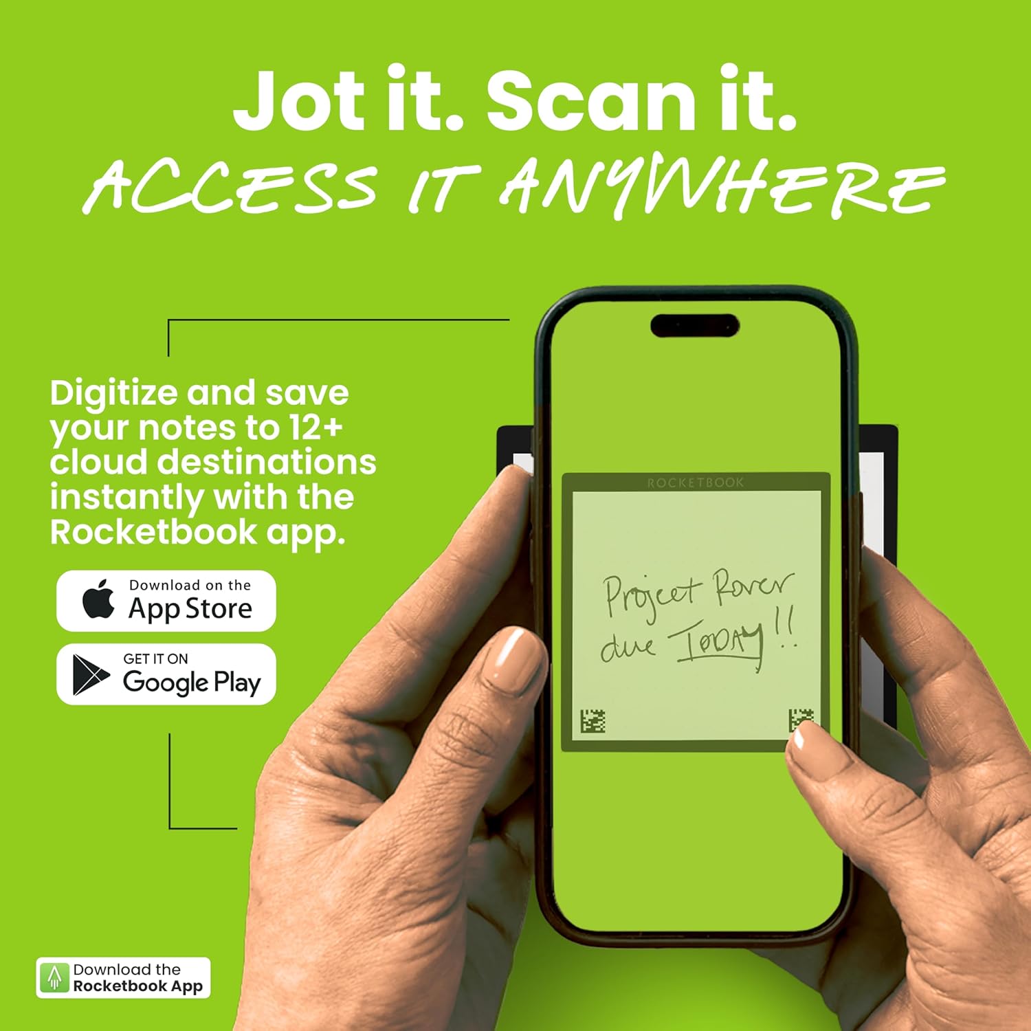 - Digital Organization: The Rocketbook app allows you to scan and upload your written notes to cloud platforms like Google Drive, Dropbox, OneNote, etc., ensuring they are accessible from anywhere. Stay organized and clutter-free with digitized notes.