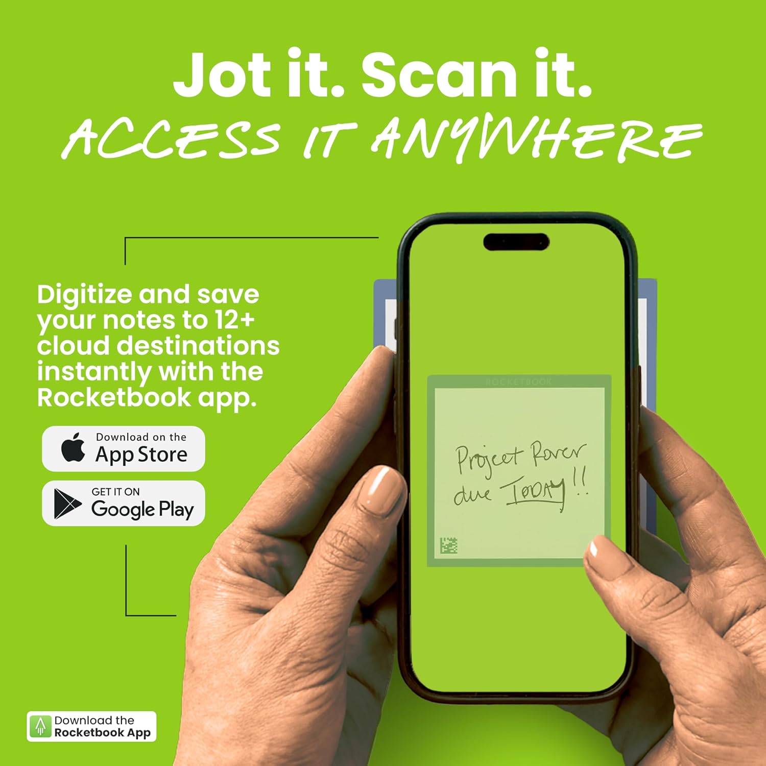 - Digital Organization: The Rocketbook app allows you to scan and upload your written notes to cloud platforms like Google Drive, Dropbox, OneNote, etc., ensuring they are accessible from anywhere. Stay organized and clutter-free with digitized notes.