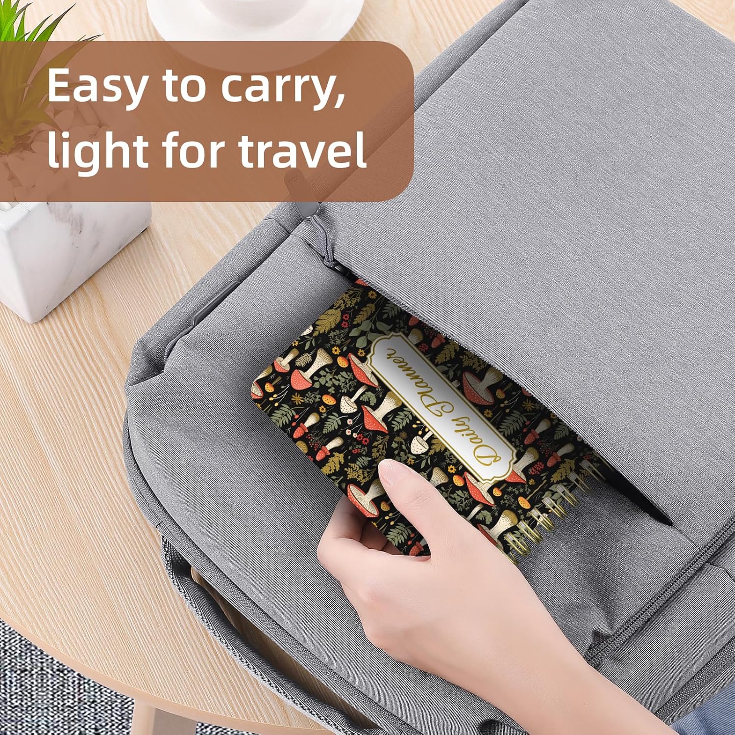 Undated Daily Planner - Spiral Notebook 80 Days One Day Per Page, Hourly Schedule, To-Do List, Notes, Everyday Planning Task, A5 Hardcover Journal Organizer Book Women Cute Aesthetic, Mushroom