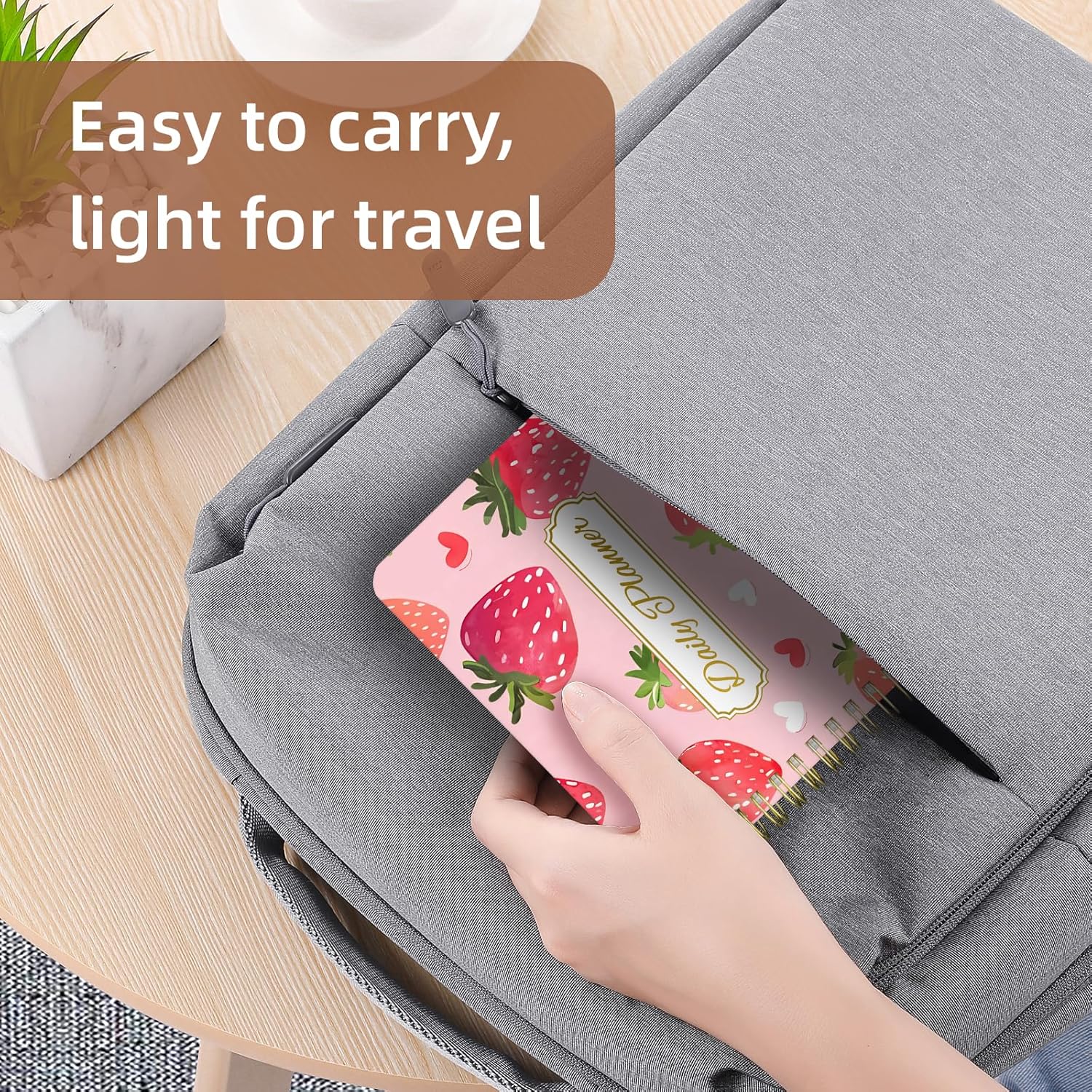 Undated Daily Planner - Spiral Notebook 80 Days One Day Per Page, Hourly Schedule, To-Do List, Notes, Everyday Planning Task, A5 Hardcover Journal Organizer Book Women Cute, Strawberry