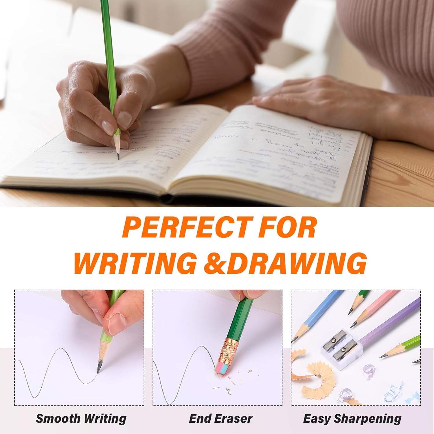- Design and Durability: take pleasure in the durability and stability that these unsharpened pencils with eraser afford; Made from wood and solid graphite, they are safe, anti falling, and house a medium strength HB core that is not easy to break during use; Serving stability even on uneven surfaces, their solid core leaves substantial, fade resistant impressions and ensures your lines remain defined