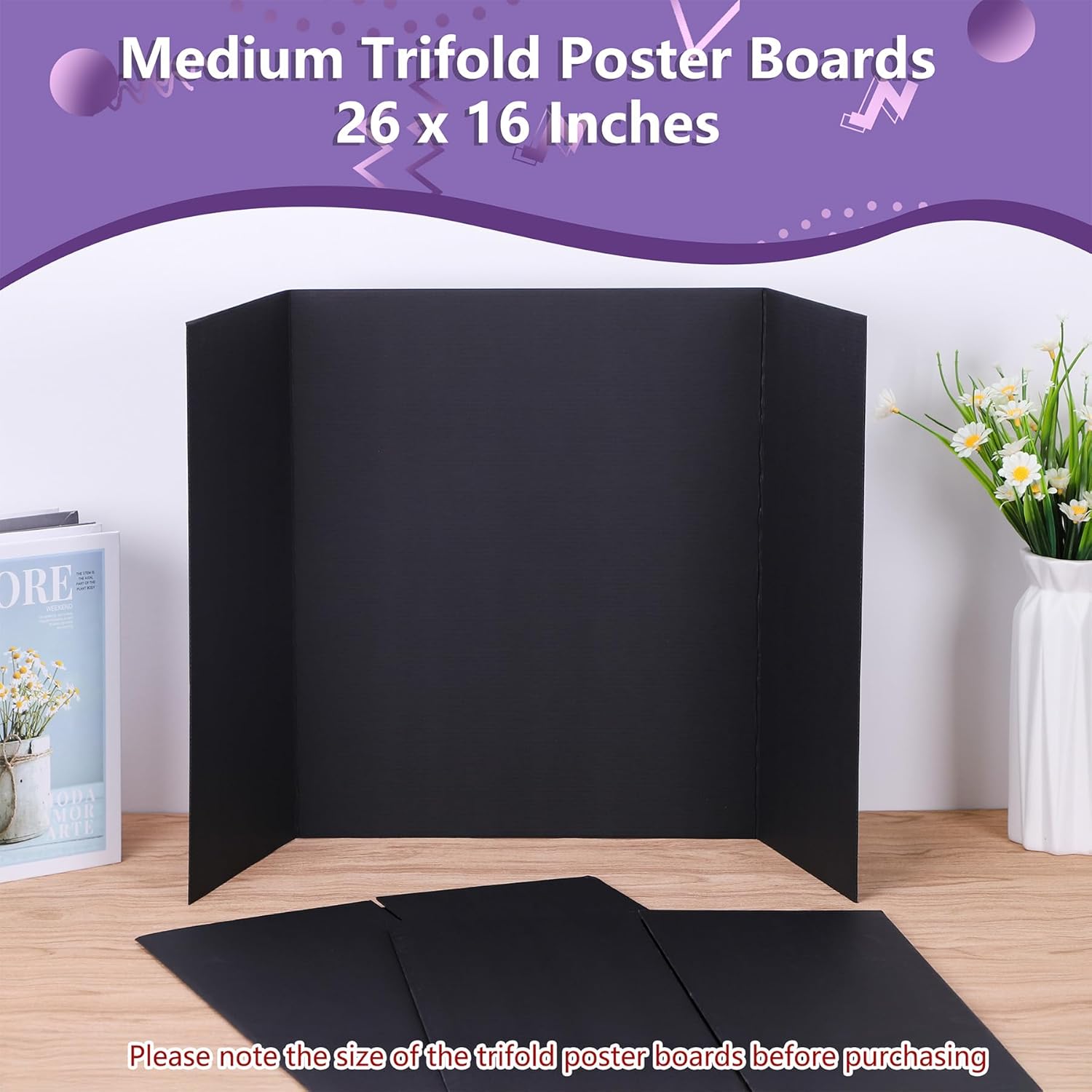 - Trifold Poster Board Set: You will receive 3 pcs medium tri fold project boards measuring approximately 26 x 16 inches, enough to meet the needs of displaying a variety of science fairs, presentations, school projects, and exhibitions. (Note: The size is smaller than a regular poster board Please confirm the size before purchasing)