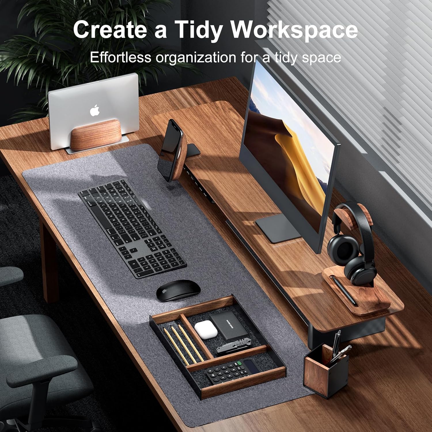- Elegant Design: Crafted from aluminum and reclaimed walnut wood, this tray combines sustainability with modern elegance. Its minimalist design complements any workspace or home decor, making it a functional yet stylish addition to your setup.