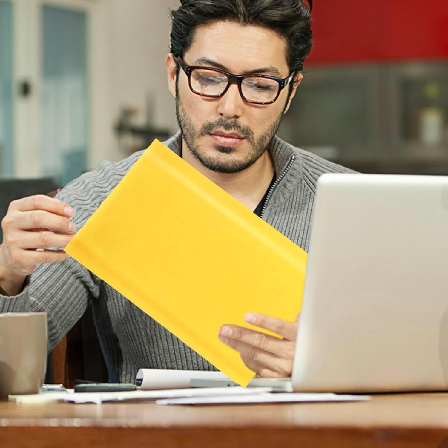 - 6×10 Bubble Mailers size:Our Kraft bubble mailers appearance Size 6x10" inch,usable dimension 6x9" inch,With 100 yellow self seal adhesives padded envelopes.The light weight can reduce transportation costs and can be used to package and transport trading card,office supplies,jewelry,cosmetic and more,great for small business packing.