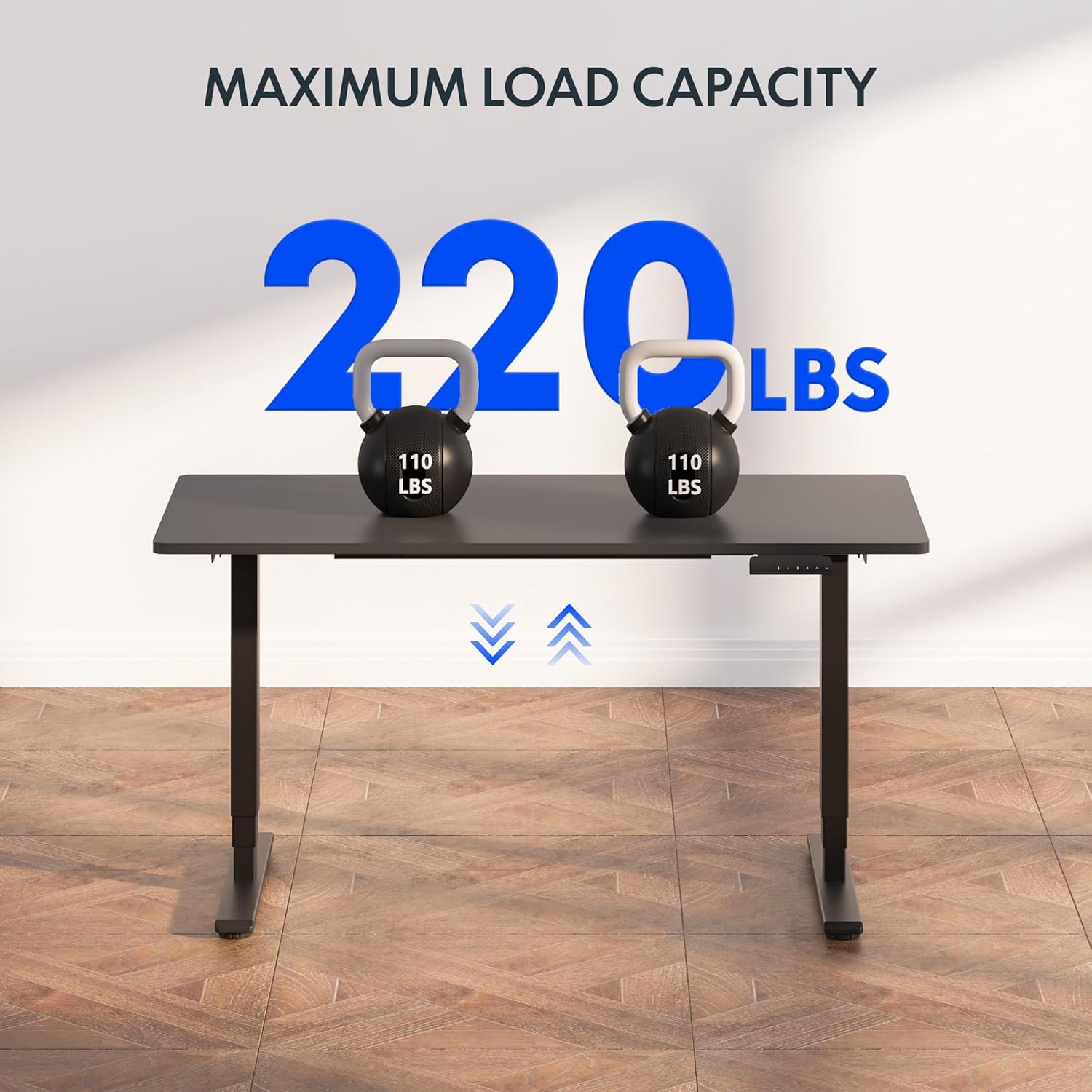 - ăQUIET & SMOOTH DUAL MOTORSă Effortlessly lift and lower the electric standing desk with whisper-quiet dual motors that produce less than 50 dB of sound. These motors can handle 65% more weight (up to 220 lbs total) than single-motor desks, ensuring minimal noise disruption, even in the quietest room.