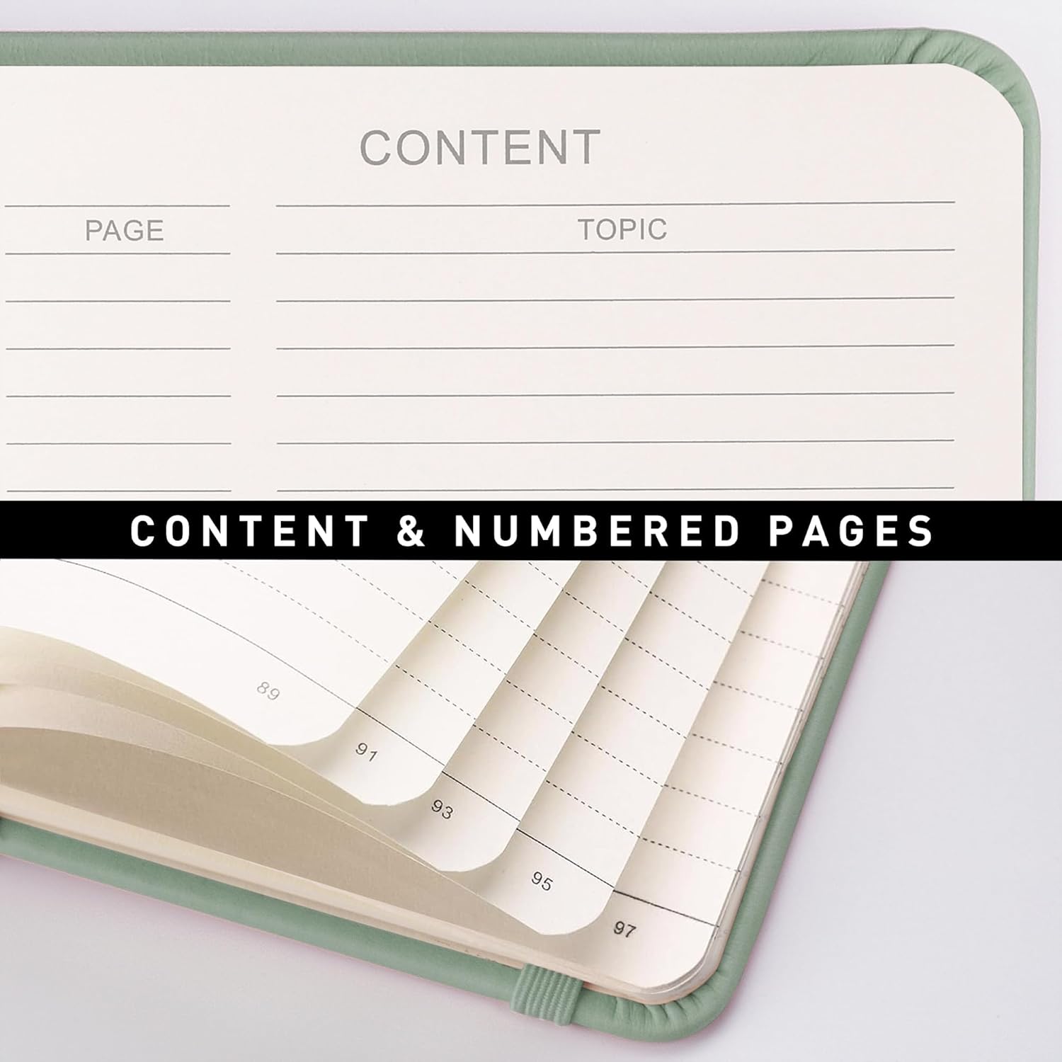 RETTACY Lined Journal Notebook, 192 Numbered Pages, A5 Medium Size (5.7'' x 8.3''), for Men & Women, Journaling, Writing, Work & Office, Leather Hardcover, 100 GSM Thick Paper (Sage Green)