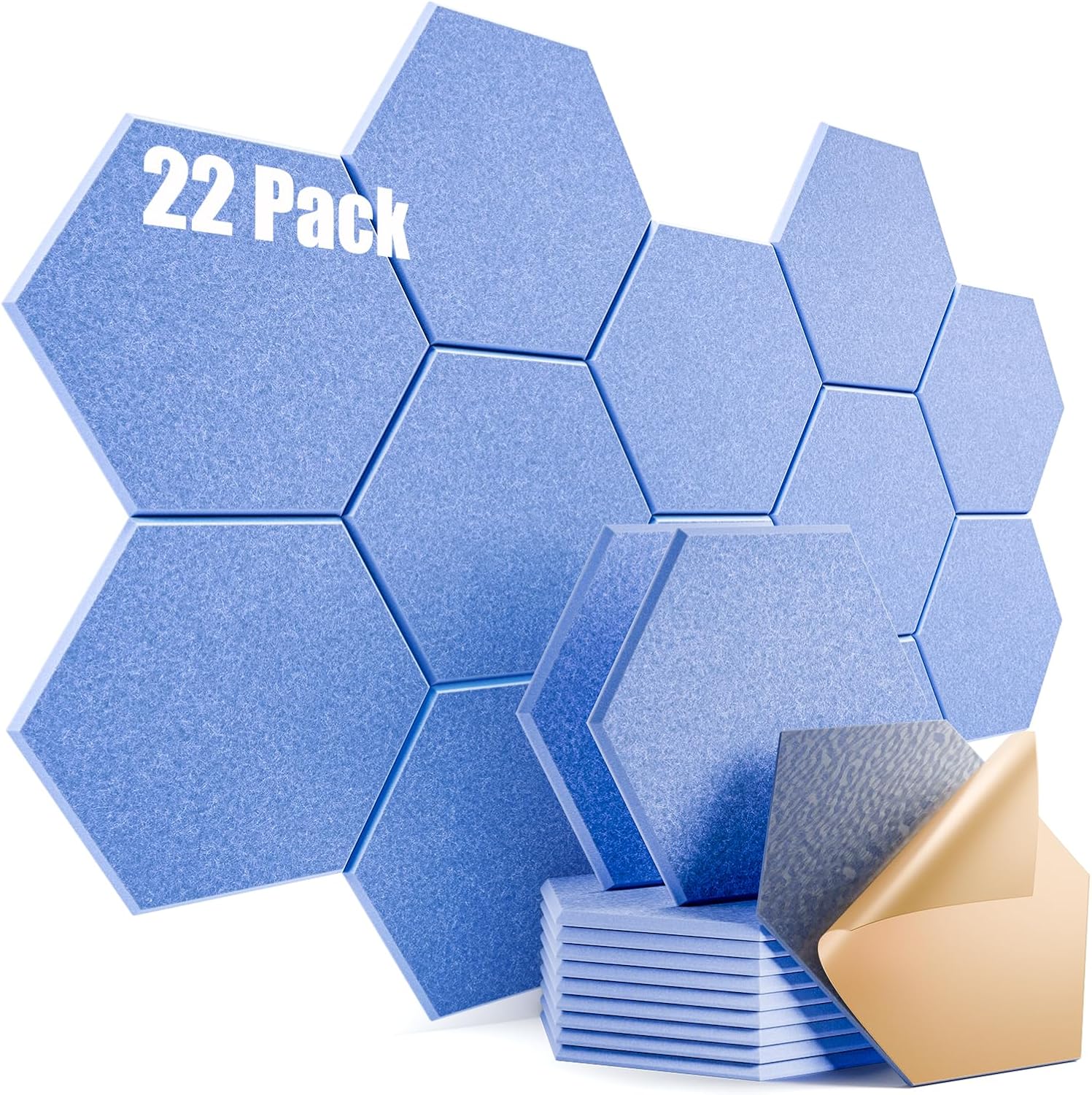 22 Pack Self-adhesive Acoustic Panels 12" X 10" X 0.4" - Sound Proof Foam Panels with High Density, Stylish Hexagonal Design, Flame Resistant, Absorb Noise and Eliminate Echoes(Steel Blue)