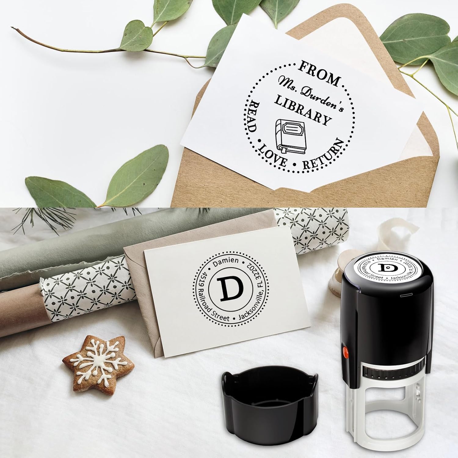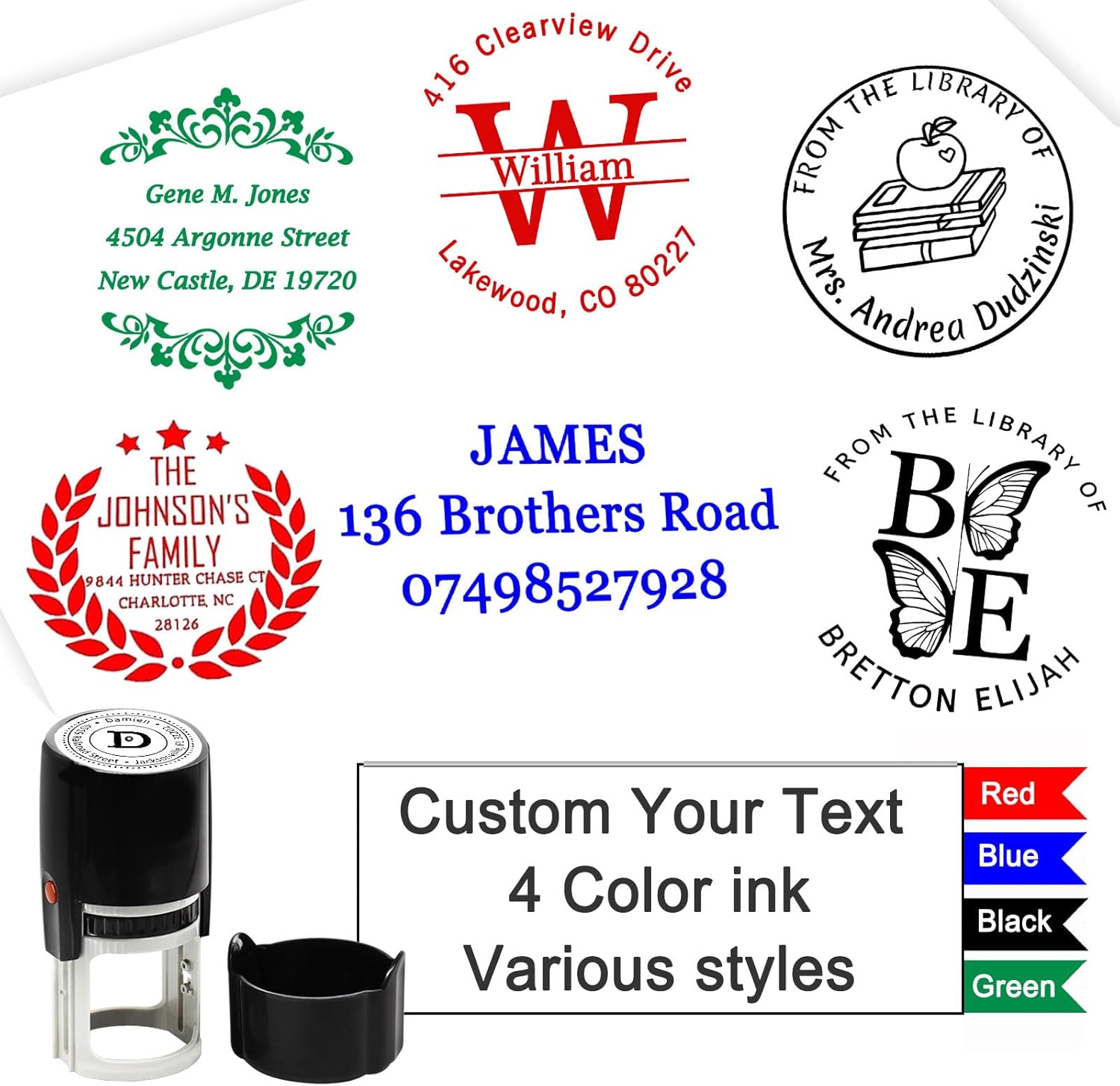 Custom Round Stamp Self Inking Personalized Self-Inking Rubber Stamp Customized Business Label Stamp Return Address Stamp Office Name Text Logo Rubber Stamps