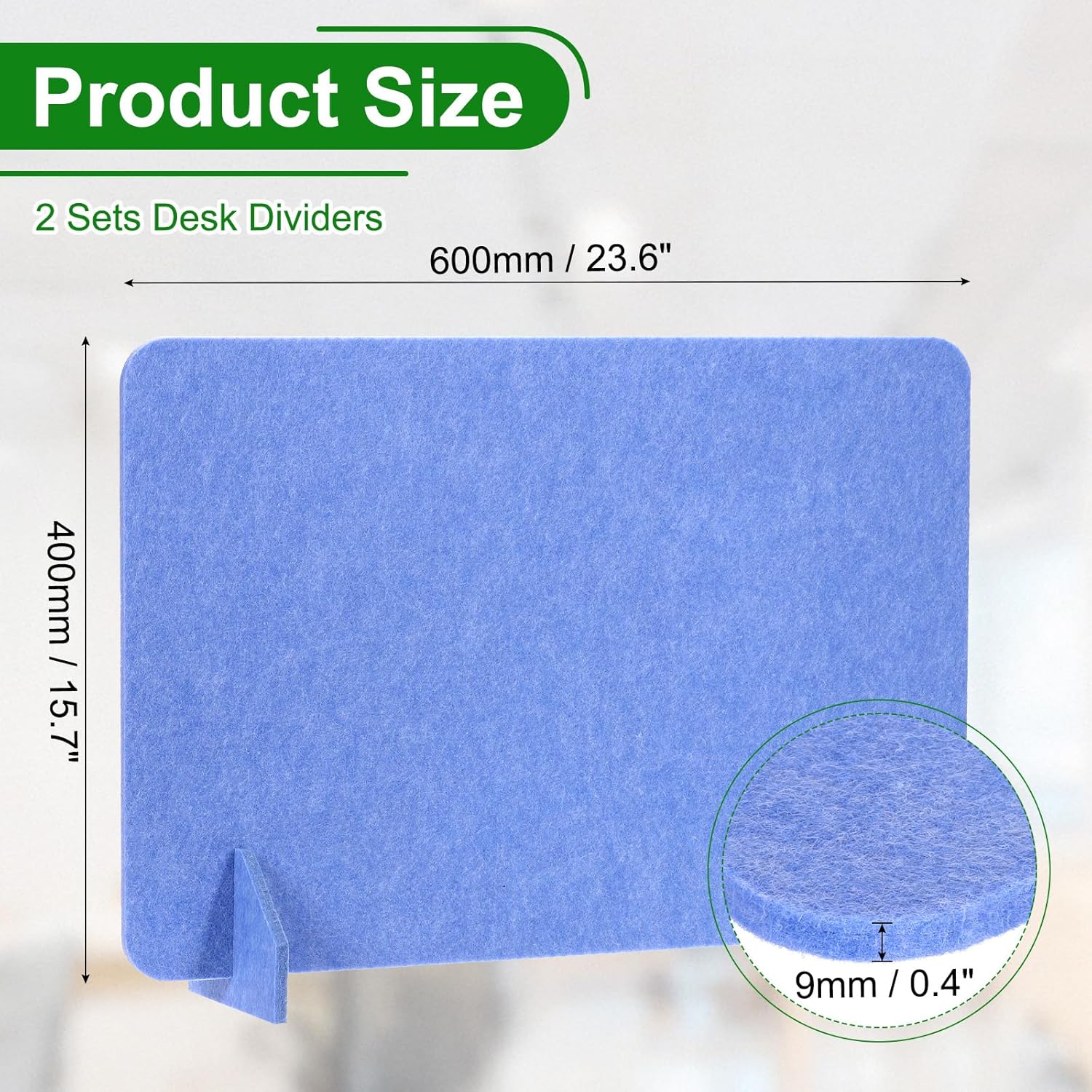 - Specification: Material: Polyester Fiber; Size: 600 x 400 mm/23.6 x 15.7 Inch(L*W); Thickness: 9mm/0.4 Inch; Color: Blue; Packing List: 2 Sets x Desk Dividers(Each Set includes 1 Pcs x Divider and 2 Pcs x support feet)