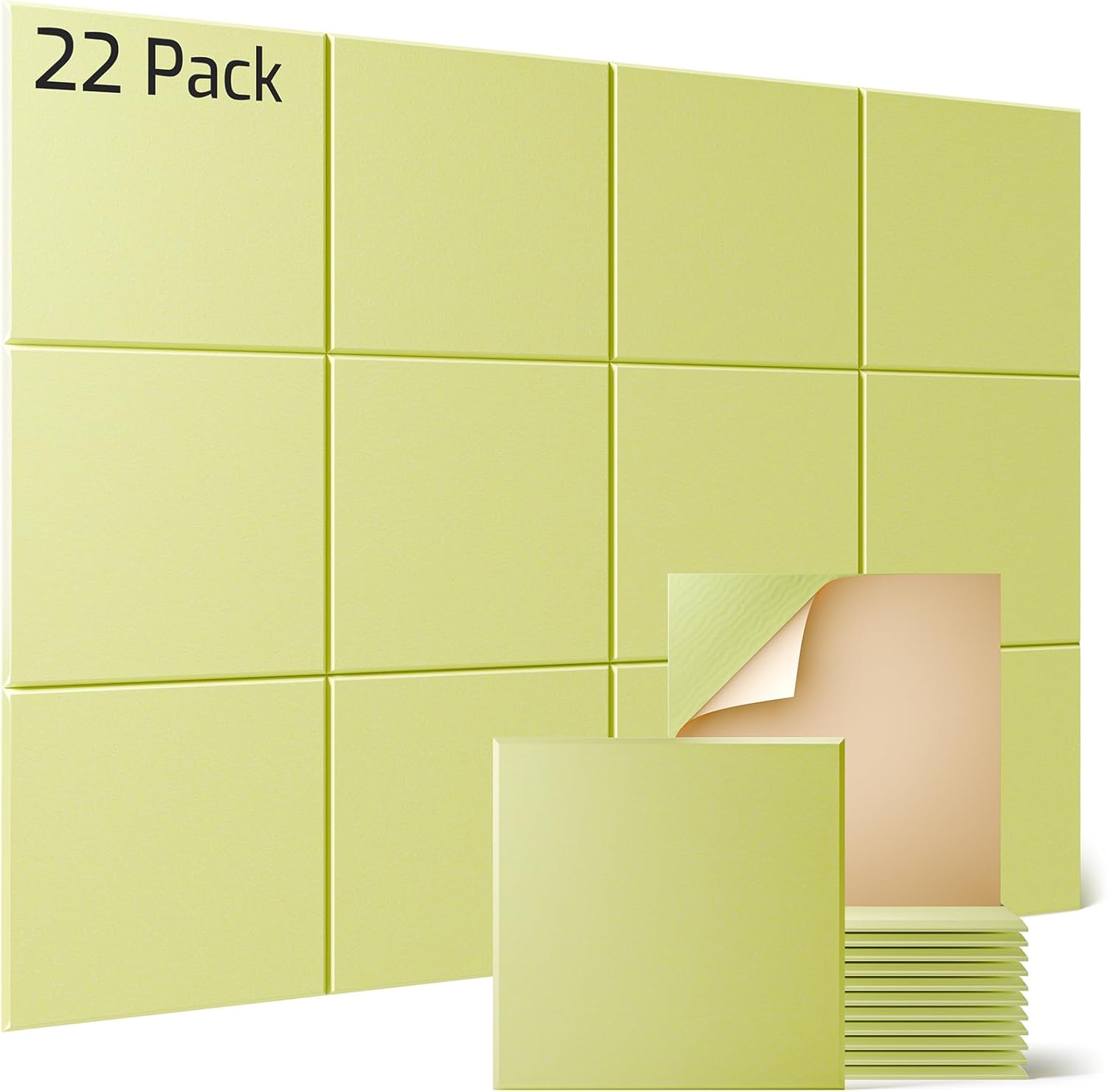 Sonicism 22 Pack Acoustic Wall Panels with Self-Adhesive, 12" X 12" X 0.4" Sound Proof Foam Panels, Decorative Soundproof Wall Panels, Sound Proof Absorbing Tiles for Home & Offices, Pale Yellow