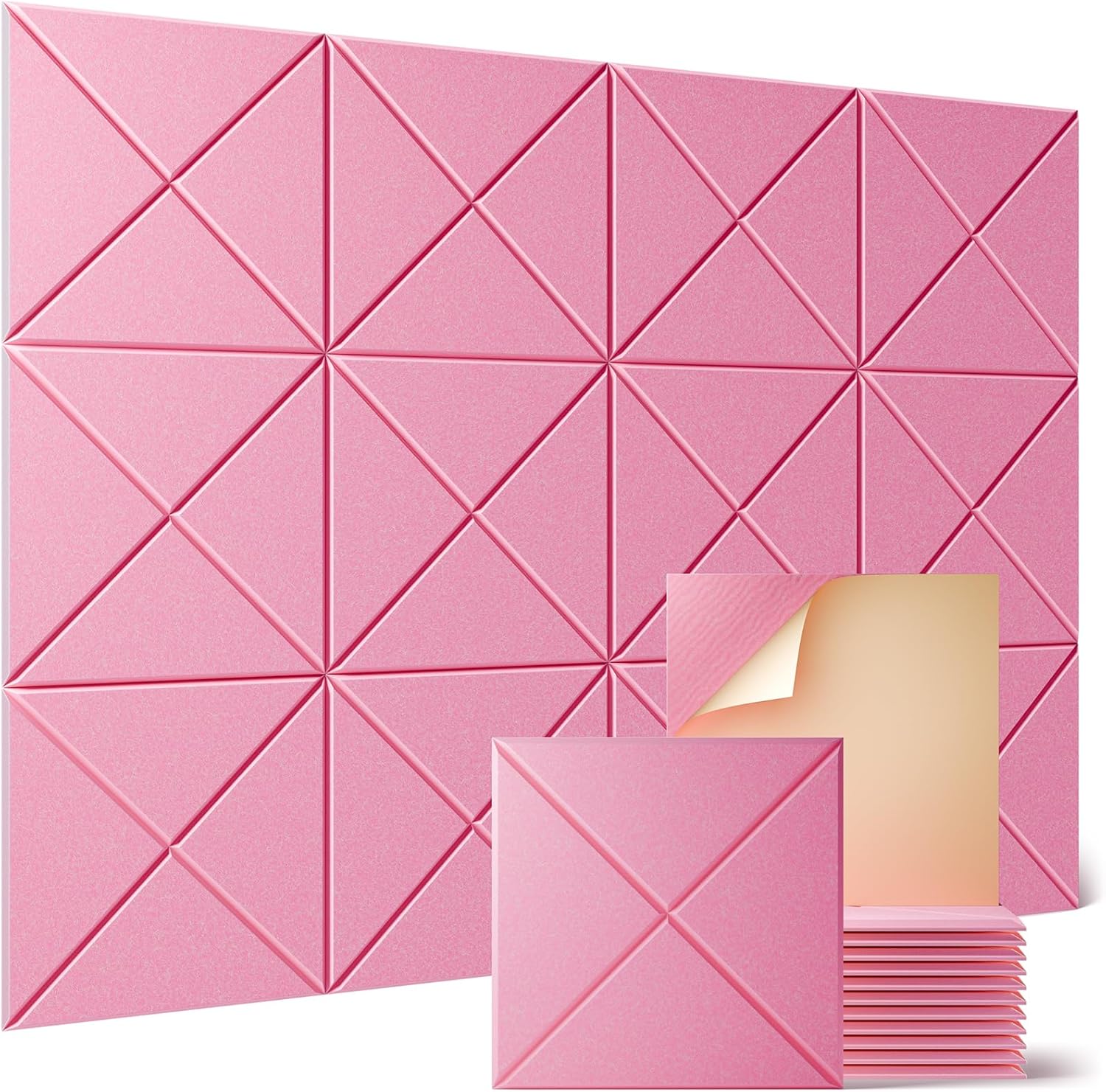 Sonicism 12 Pack X-Lined Acoustic Panels with Self-Adhesive, 12"X 12"X 0.4" Sound Proof Foam Panels, Decorative Soundproof Wall Panels, Sound Absorbing Tile for Home & Offices, Pink