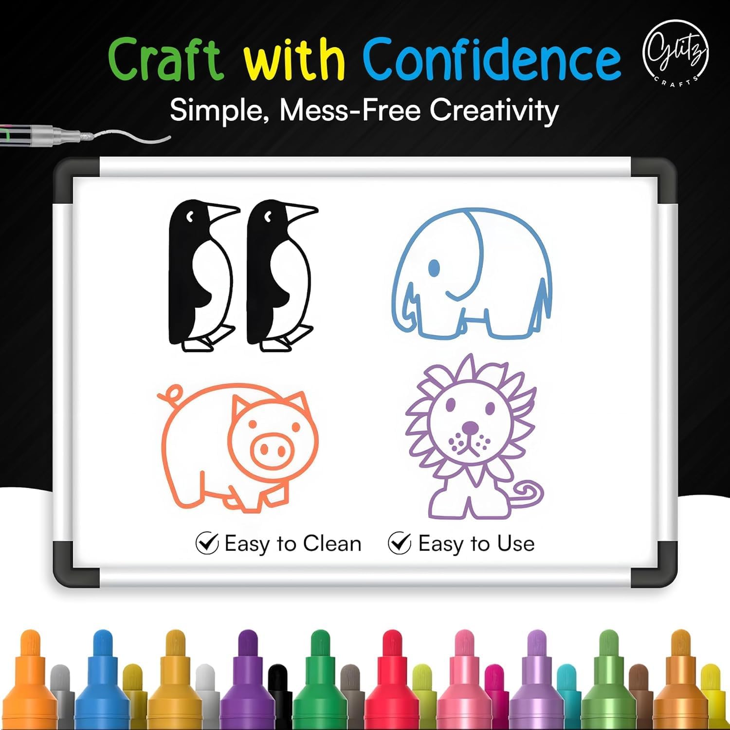 - Dust-Free & Easy to Clean: Enjoy a mess-free experience with our dust-free markers. Easily erasable and washable on most surfaces, they leave no residue. For porous surfaces, seal and test on a small area for 24 hours.