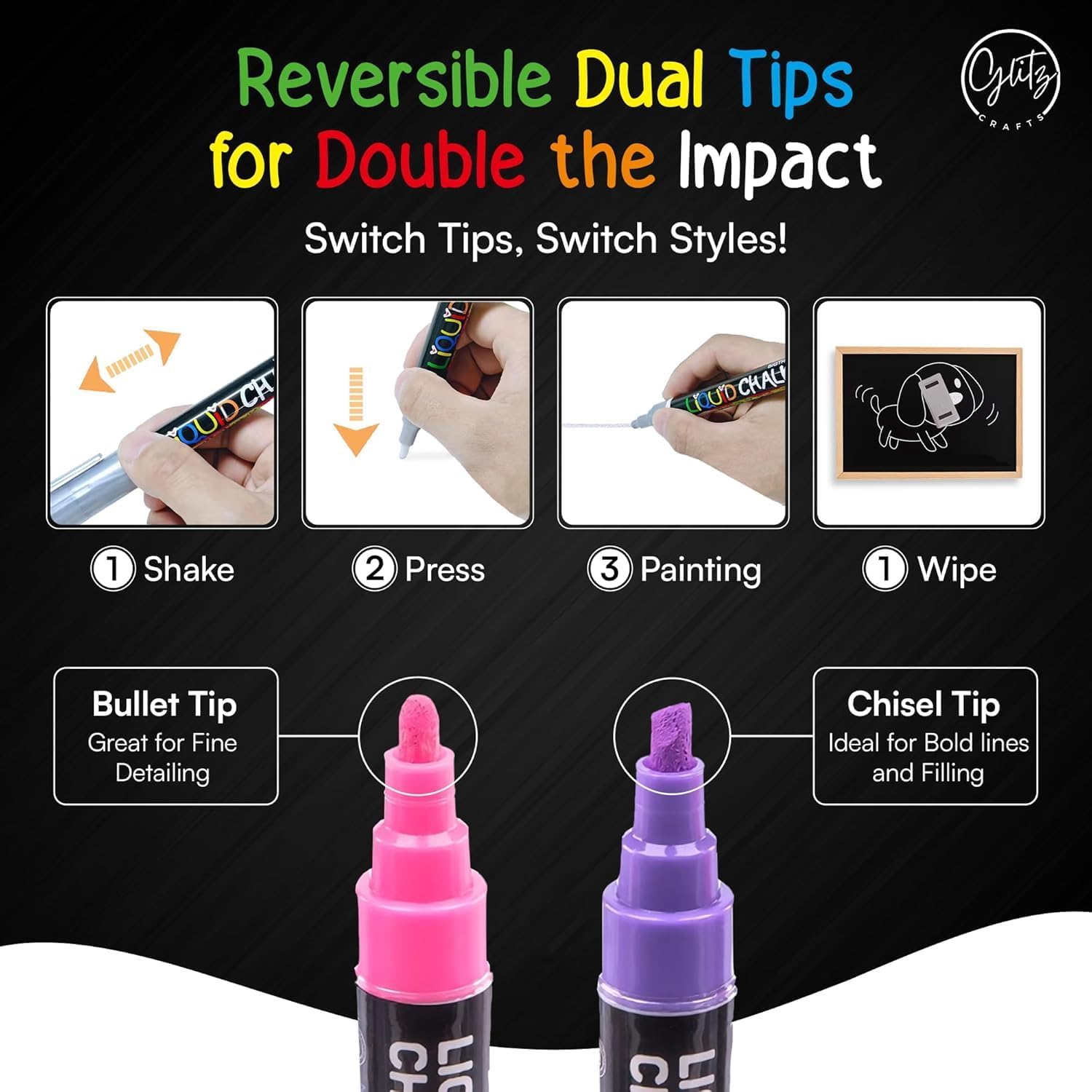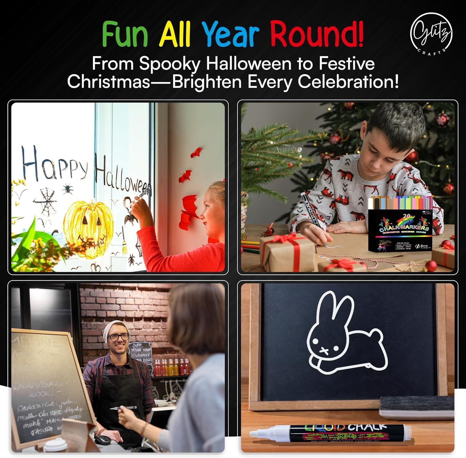 - Chalk Marker: Create vibrant designs with our neon chalk markers. Perfect for creating colorful designs for birthdays, holidays, and special occasions.