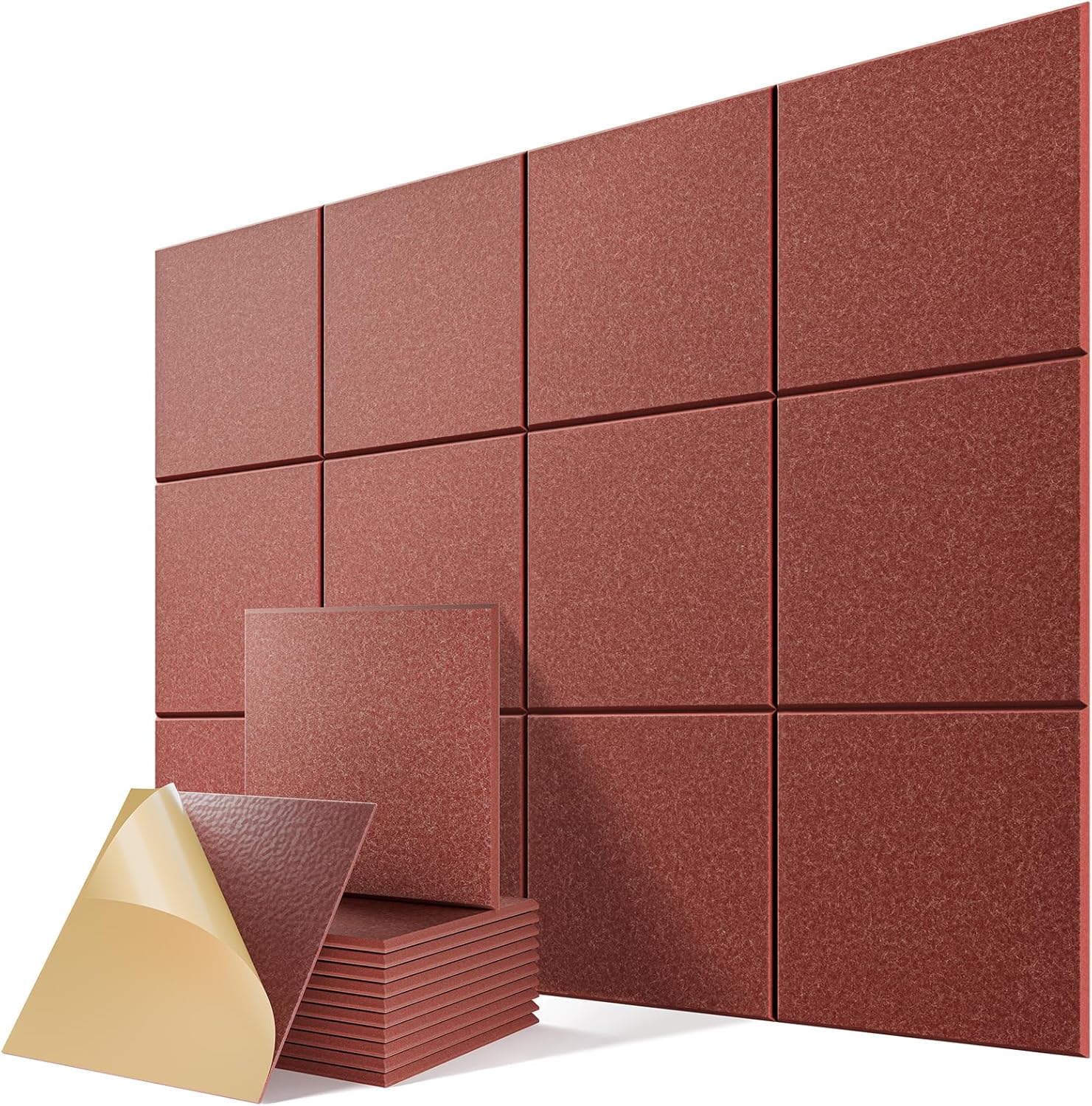 12 Pack Self-Adhesive Acoustic Panels, 12" X 12" X 0.4" High-Density Sound Proof Foam Panels for Walls, Soundproof Wall Panels for Home & Office (Red)