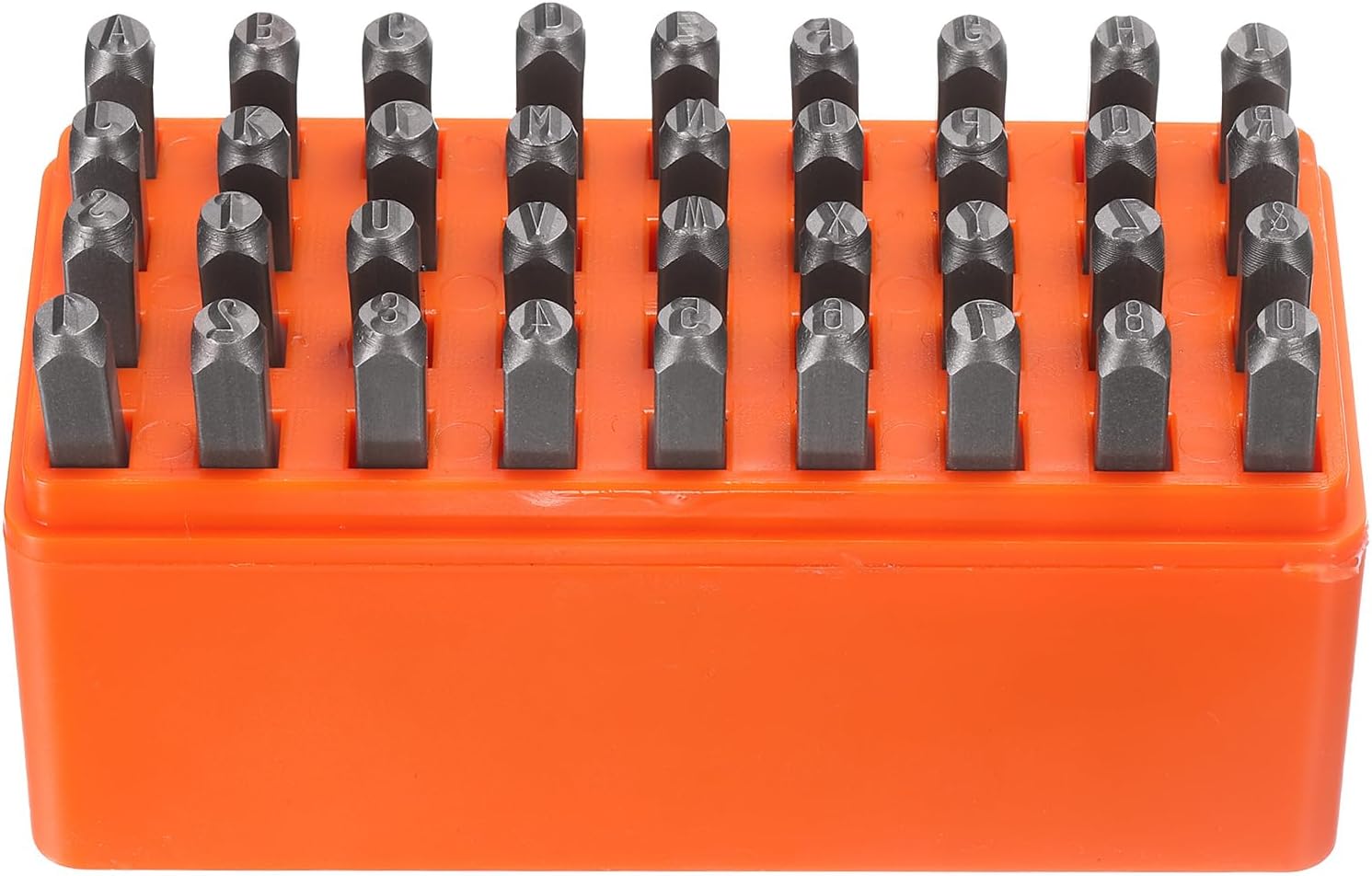 HARFINGTON 36pcs Metal Stamping Kit 5/32" (4mm) Steel Uppercase Letter and Number Punch Set (A-Z / 0-8 / "&" Symbol) Punch Press Tool with Case for Imprinting Metal Plastic Wood Leather
