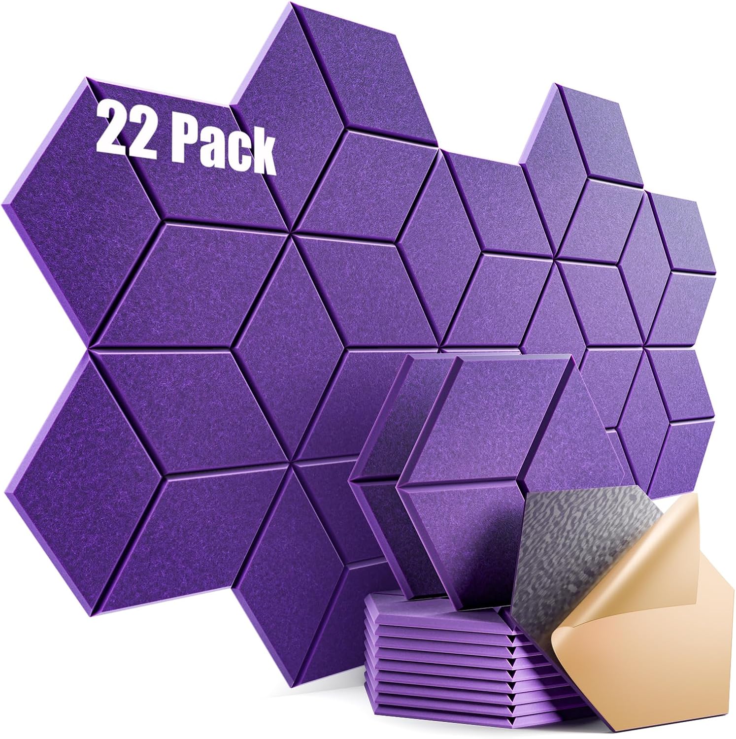 22 Pack Self-adhesive Acoustic Panels 12" X 10" X 0.4" - Sound Proof Foam Panels with High Density, Y-Lined Design, Flame Resistant, Absorb Noise and Eliminate Echoes(Purple)