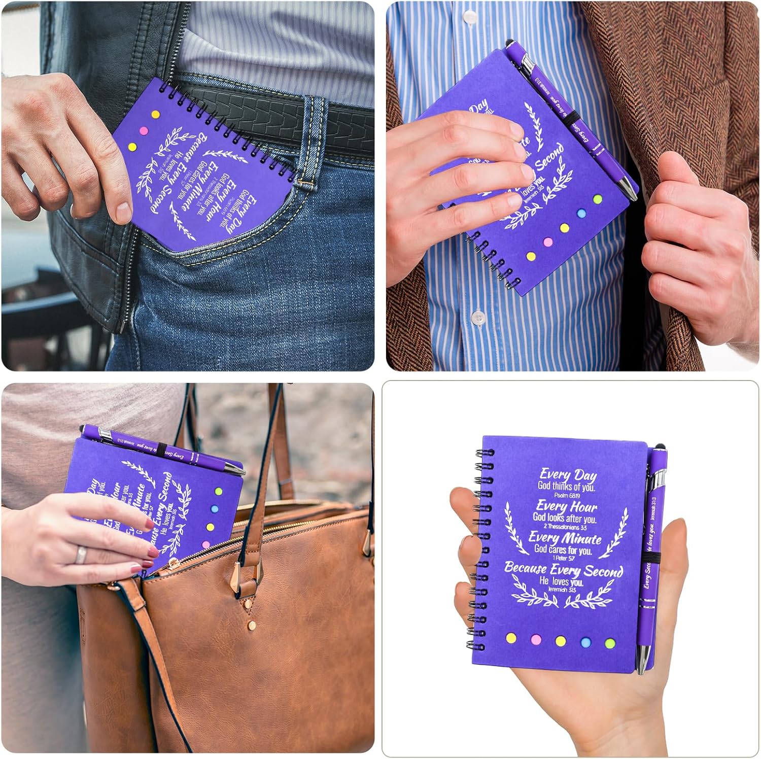 - Perfect for On-the-Go Users: Compact mini notepads fit into bags or pockets, making them great for travel kits, group prayer sessions, personal study, or souvenirs. These small Bible study notebooks (4.6 * 5.5 inch) and church pens (5.4 * 0.31 inch) are great for Sunday school stationery kits. Each notebook has 50 sheets, 100 pages, making them well-suited for youth ministry, volunteers, teams, friends, family, or your staff. Available in a convenient bulk set for easy sharing