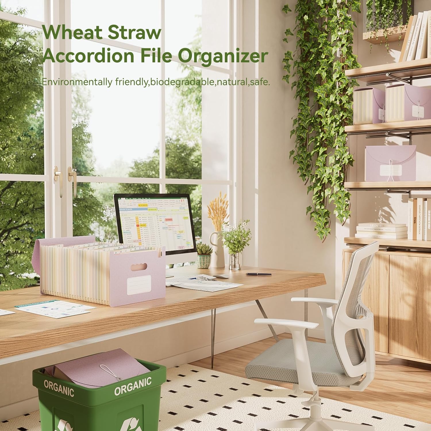 - Wheat Straw Material:Ecostash's Wheat Straw Accordion File Organizer are BPA-free, making them safer and healthier compared to plastic and paper file folders. Unlike plastic and paper hanging folders, wheat straw material is sourced from renewable agricultural waste, reducing dependence on petrochemical plastics and forest logging. This helps reduce greenhouse gas emissions, making a collective contribution to protecting the Earth's ecology.