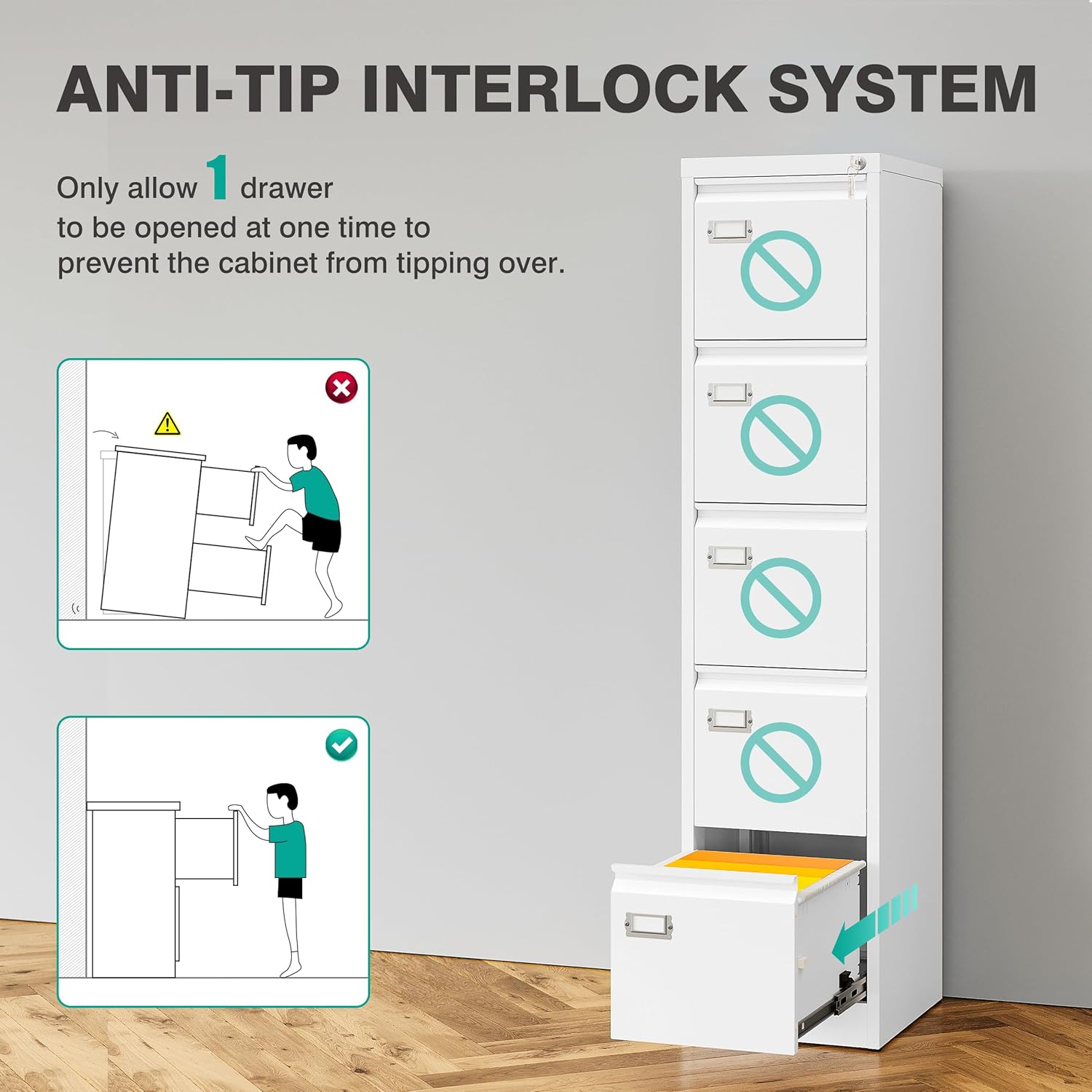 - Perfect Design: White Locking vertical file cabinet is easy to access and quiet.Top of the office vertical file cabinet can withstand up to 120 pounds the weight of. The sturdy construction makes this cabinet sturdy and durable, making it ideal for extended use in the home or office.