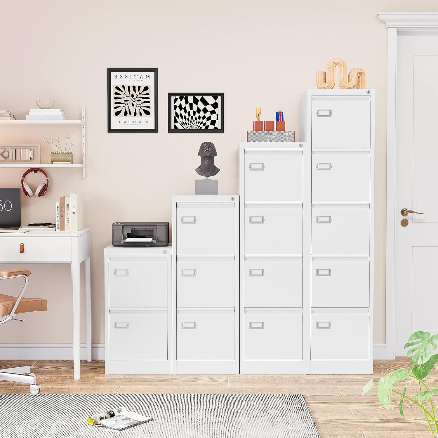 - Heavy File Cabinet: White file cabinet is sturdy and durable, with an all-metal design,coated with electrostatic phosphorus-free epoxy spray coating, making it very strong and resistant to corrosion and rust;