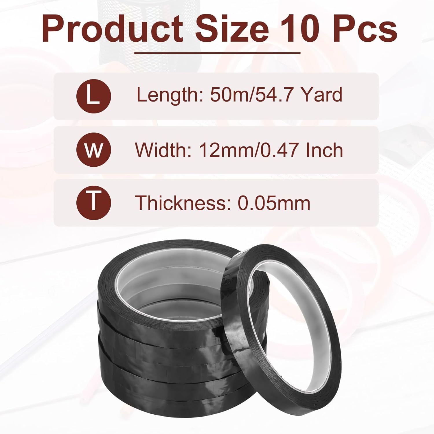 - This Art Tape is in size of: Length: 50m/54.7 Yard; Width: 12mm/0.47 Inch; Thickness: 0.05mm; Material: PET; Color: Black; Temperature Resistance: 100Β°C; In the Package of: 10 x Whiteboard tapes